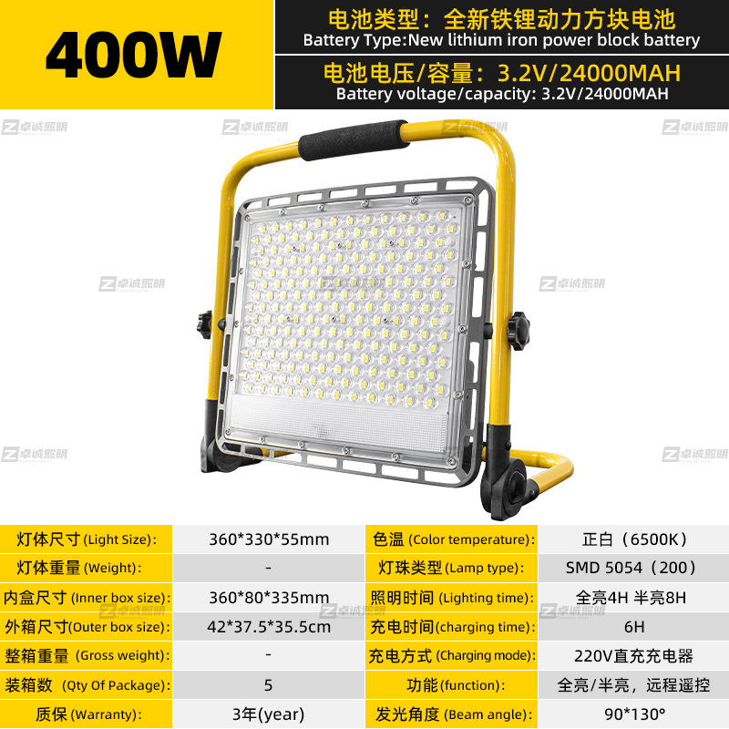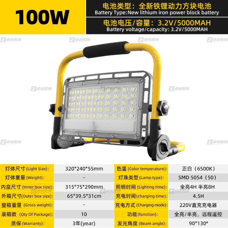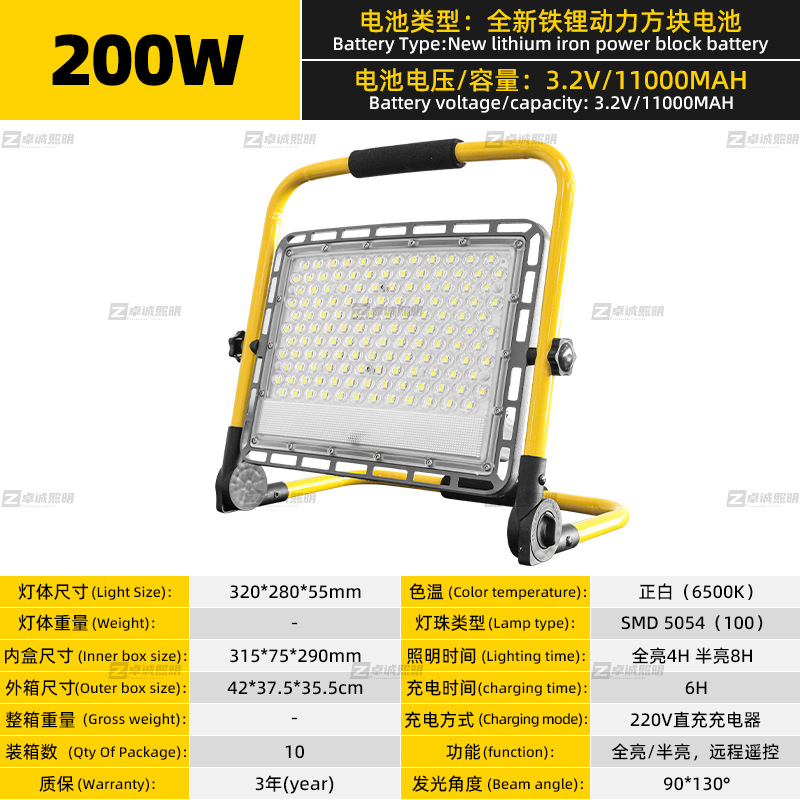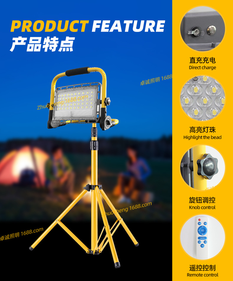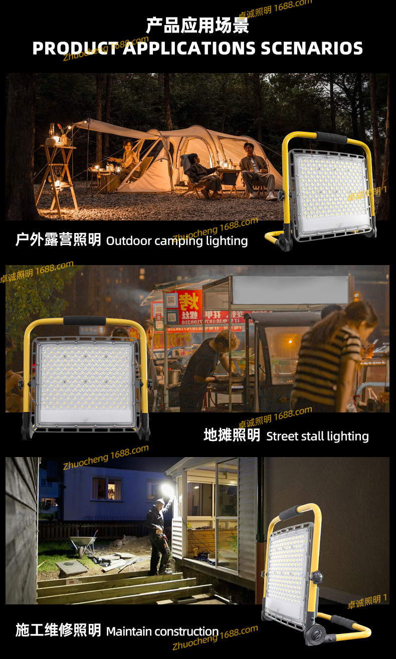야외 지능형 원격 제어 충전 투광 조명 휴대용 휴대용 투광 조명 이동식 캠핑 사이트 비상 조명
