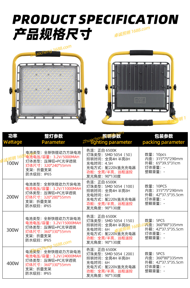 야외 지능형 원격 제어 충전 투광 조명 휴대용 휴대용 투광 조명 이동식 캠핑 사이트 비상 조명스토어 가기