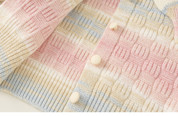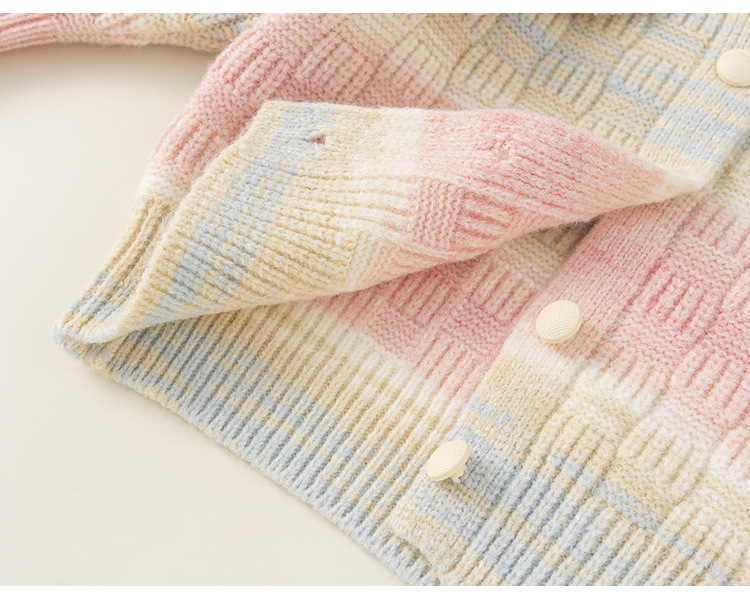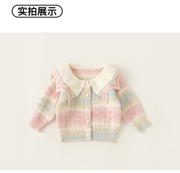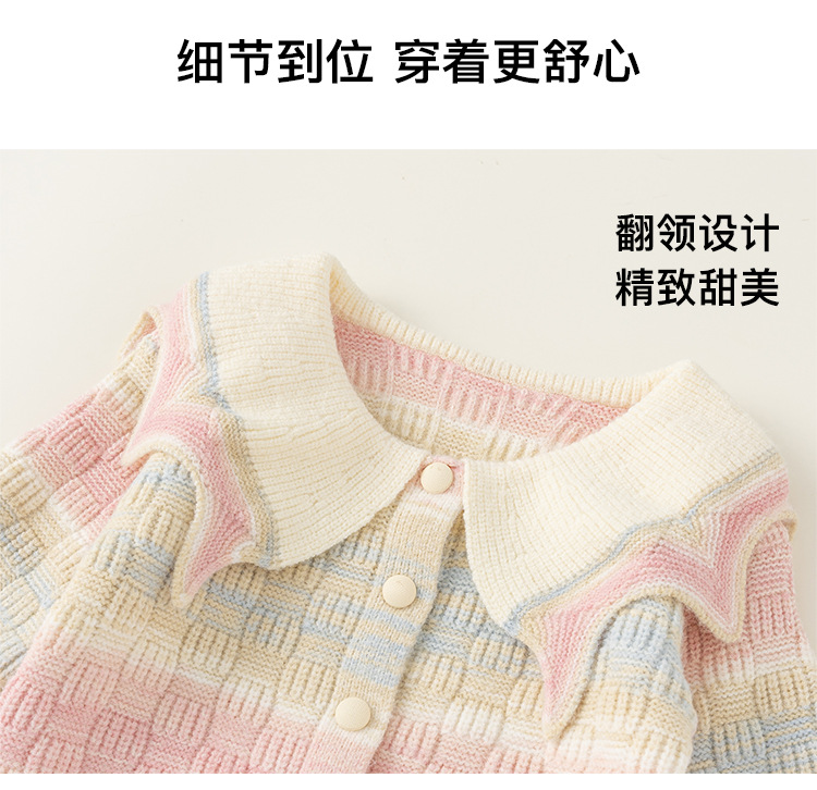 유바오 아동복 2026 봄 가을 큰 카라 여아 스웨터 아동 니트웨어 그라데이션 컬러 스웨터 여아 코트스토어 가기