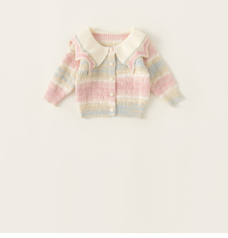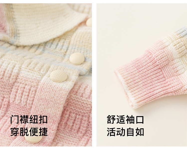 유바오 아동복 2026 봄 가을 큰 카라 여아 스웨터 아동 니트웨어 그라데이션 컬러 스웨터 여아 코트