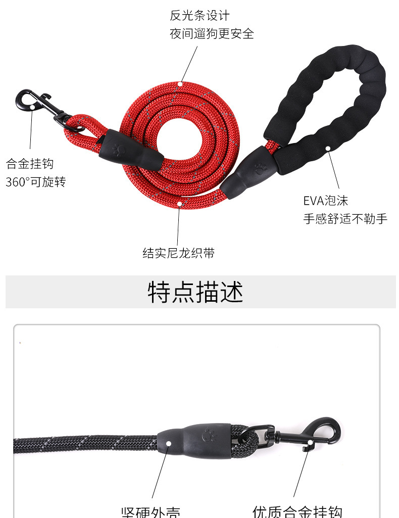 국경 간 폭발 방지 반사 애완 동물 가죽 끈 개 가죽 끈 개 가죽 끈 가죽 끈 대형 및 중형 개 가죽 끈 애완 동물 용품