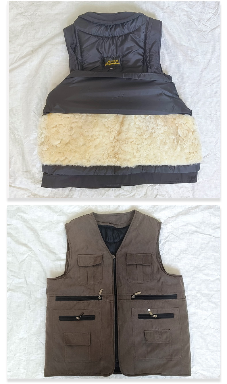 양모 조끼 남성용 가죽과 모피 일체형 조끼 중년 및 노인용 반팔 가을 겨울 아빠용 두꺼운 보온 조끼