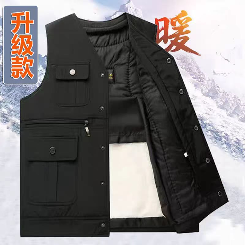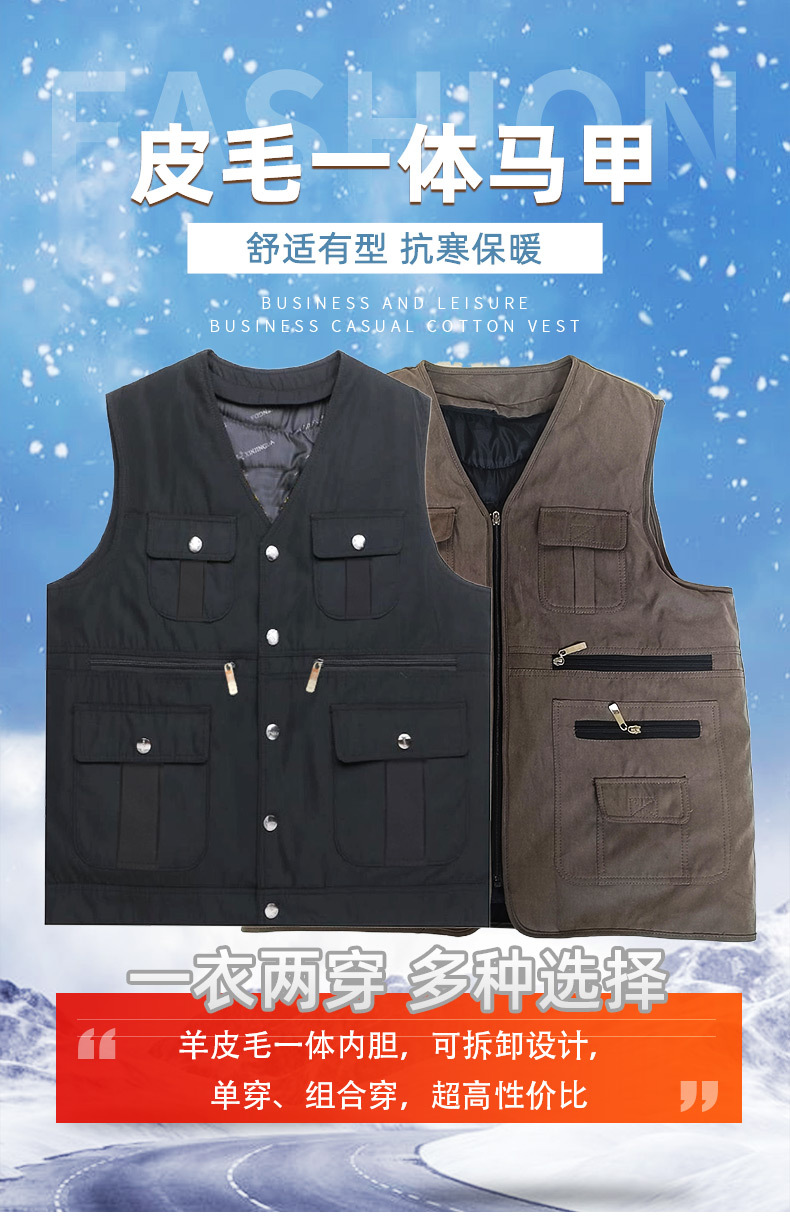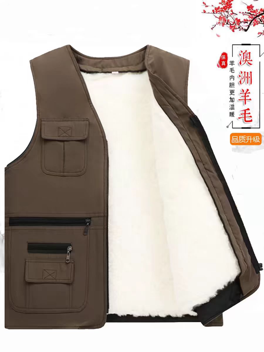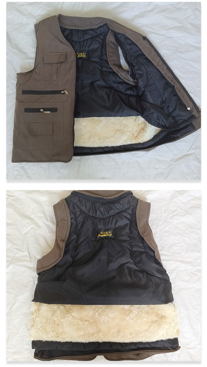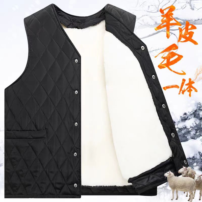 양모 조끼 남성용 가죽과 모피 일체형 조끼 중년 및 노인용 반팔 가을 겨울 아빠용 두꺼운 보온 조끼스토어 가기