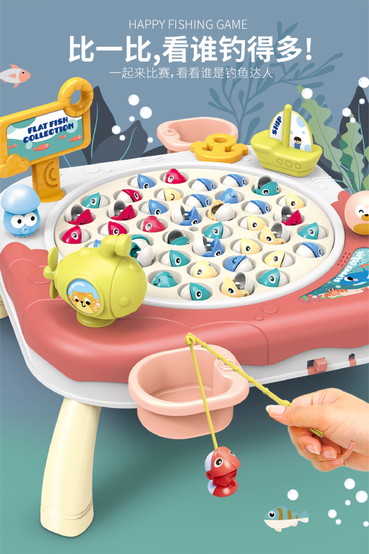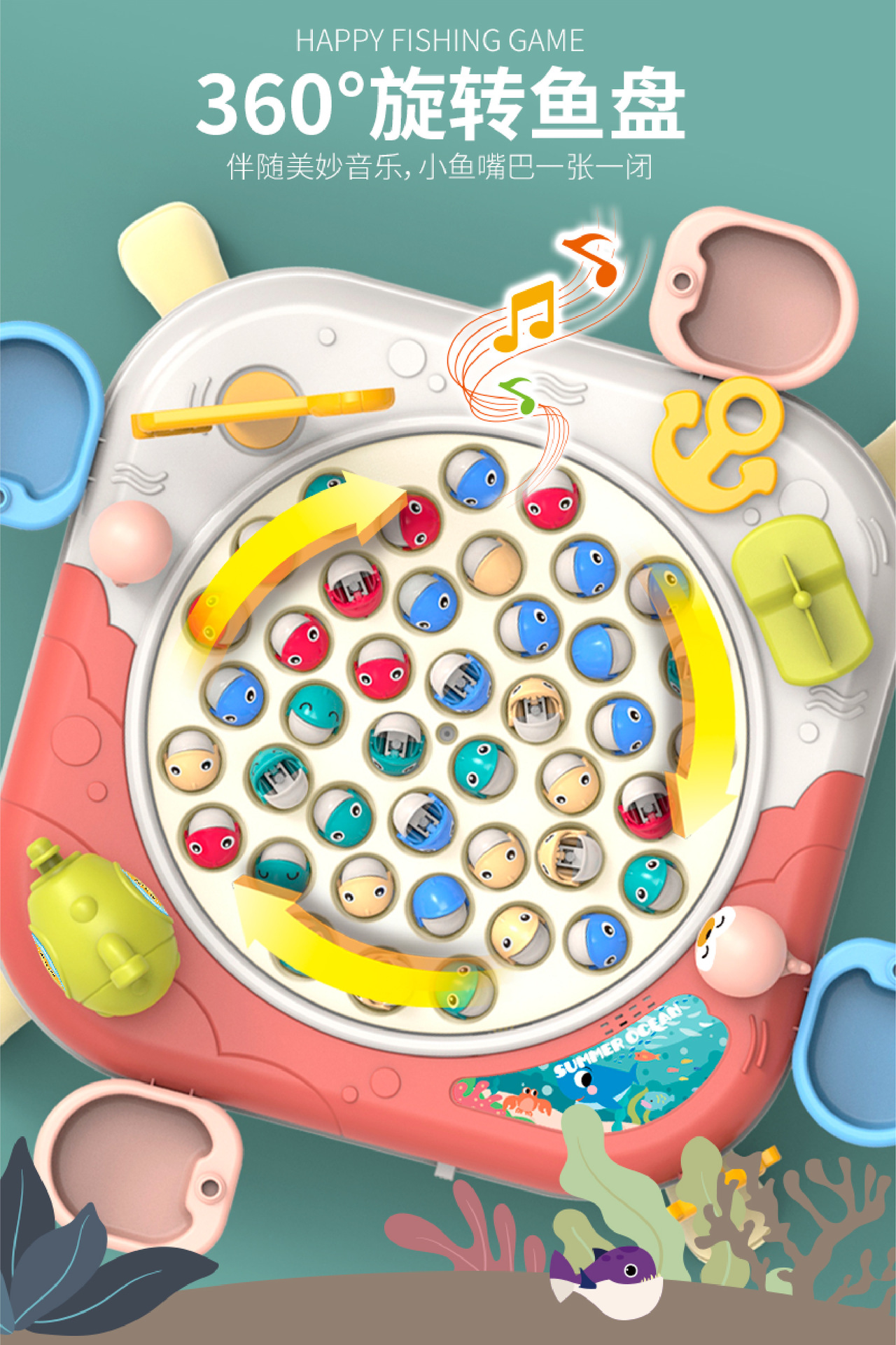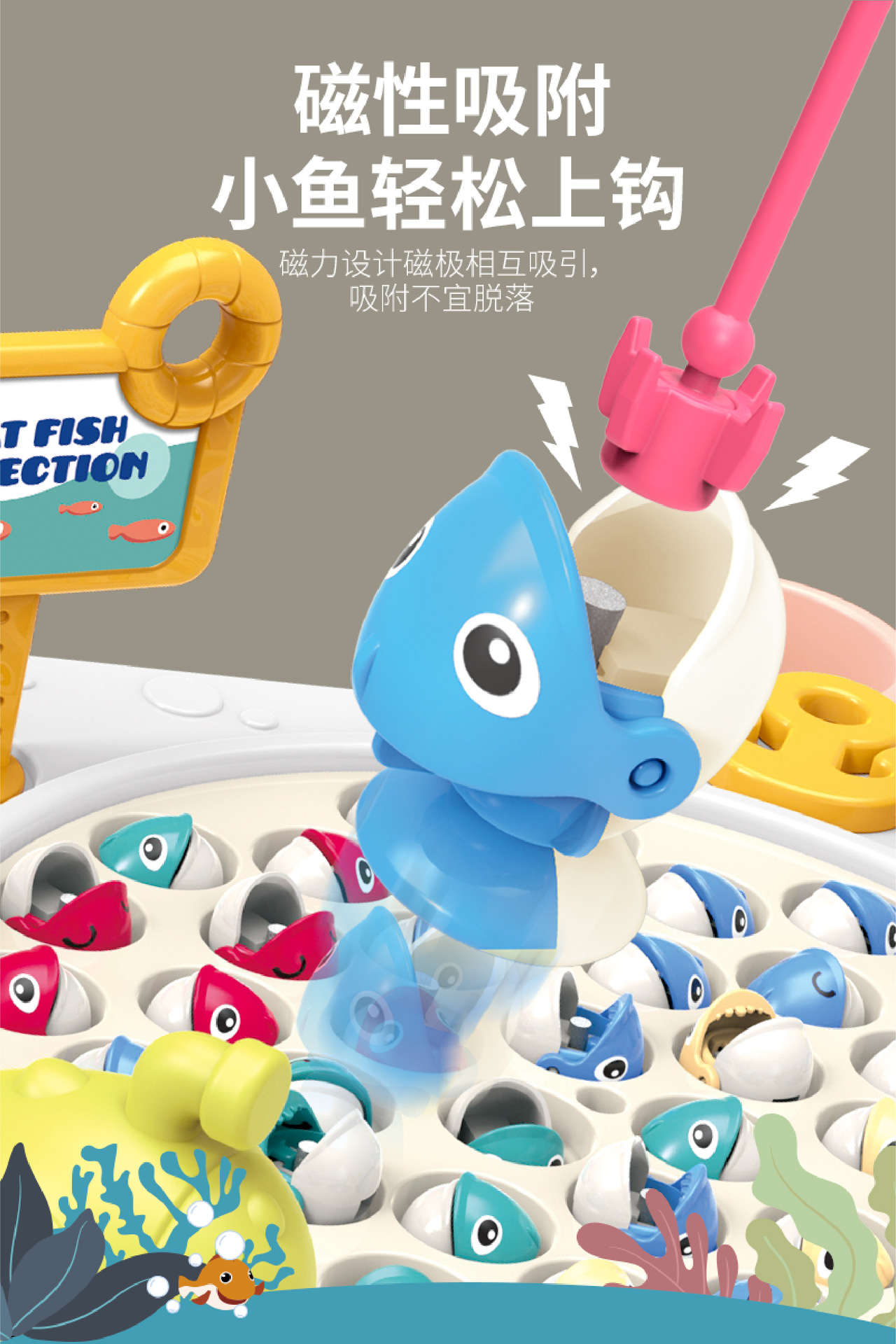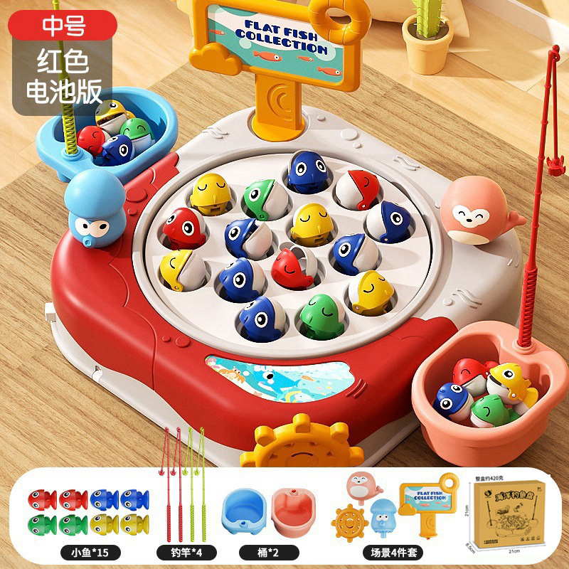 Douyin 아기 전기 회전 자기 낚시 장난감 소년과 소녀 교육 부모-어린이 대화 형 바다 Diaoyutai 장난감