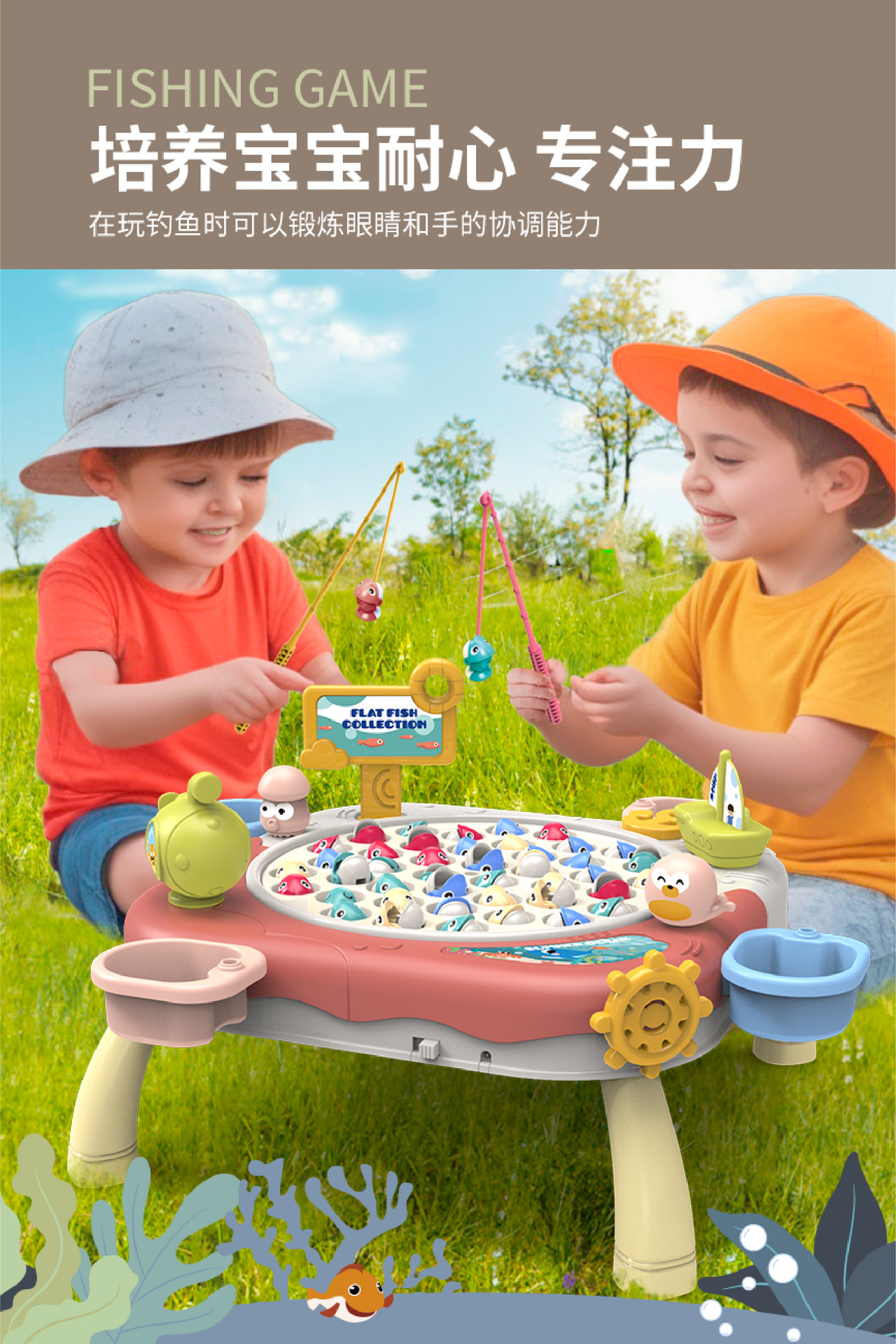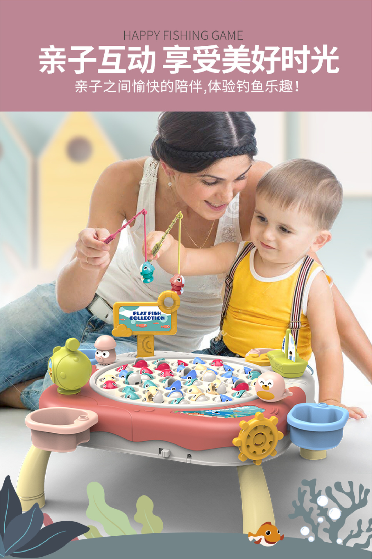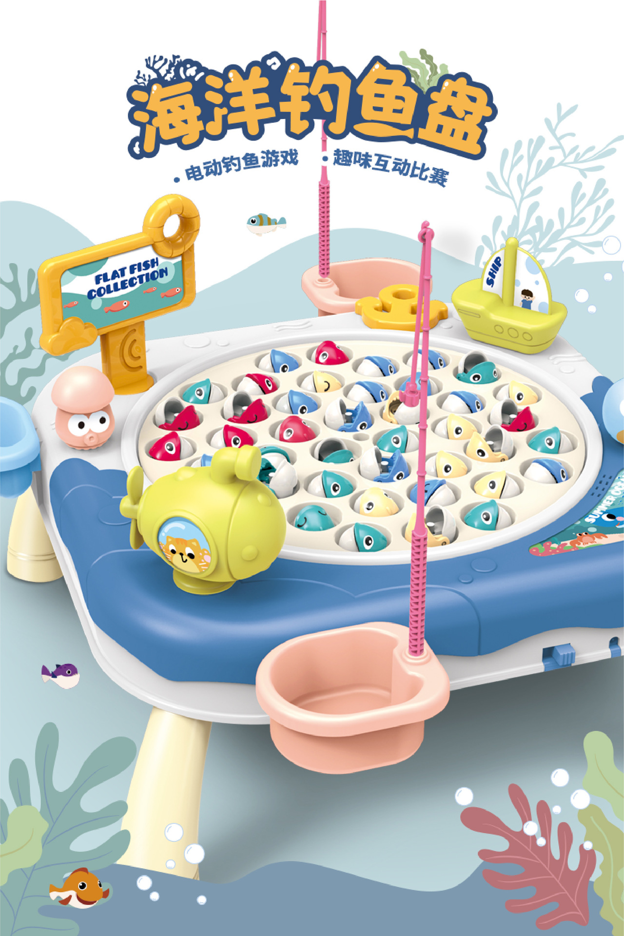 Douyin 아기 전기 회전 자기 낚시 장난감 소년과 소녀 교육 부모-어린이 대화 형 바다 Diaoyutai 장난감