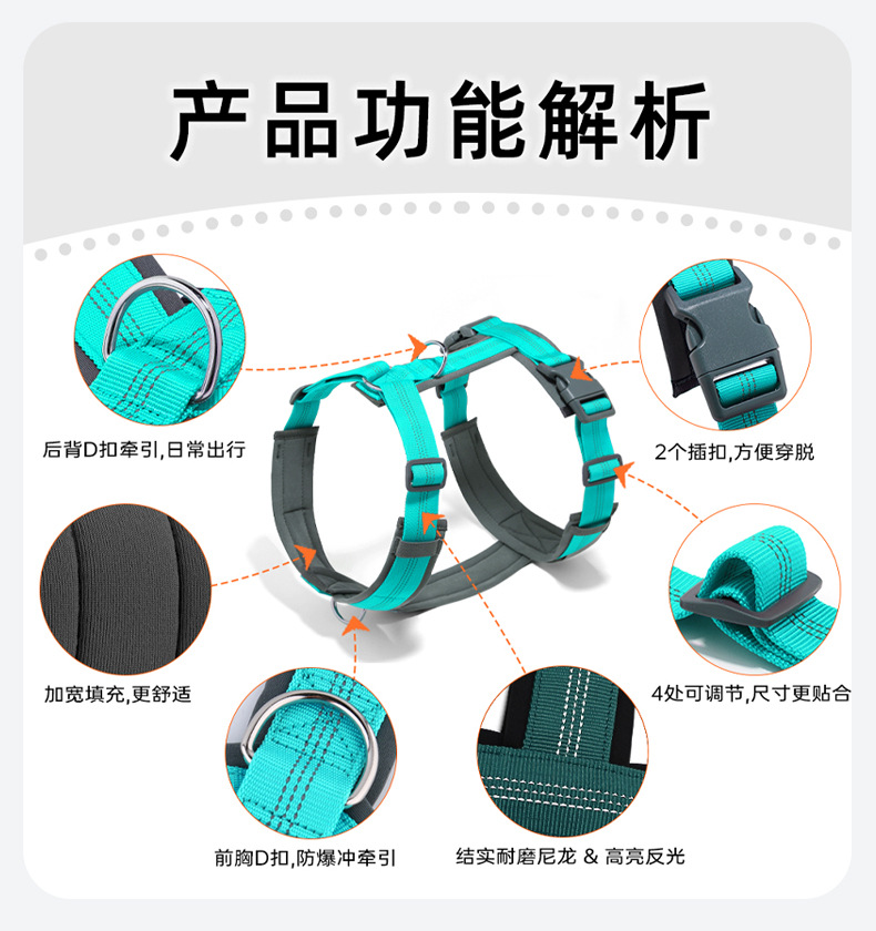 개 견인 로프 가슴 스트랩 조끼 유형 대형, 중형 및 소형 개 애완 동물 허스키 폭발 방지 가슴 백 개 보행 로프