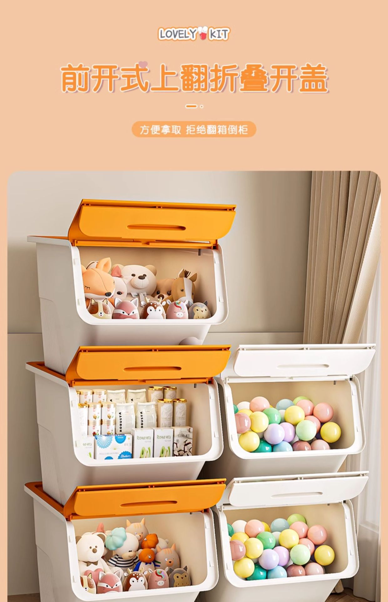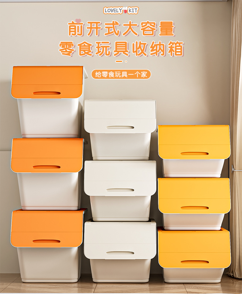 장난감 저장 상자 전면 개방 가정용 플립 저장 상자 저장 상자 저장 상자 어린이 간식 옷 저장 상자 보관 캐비닛