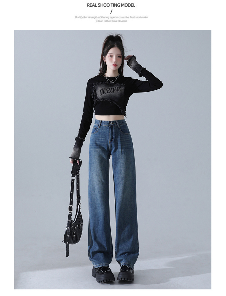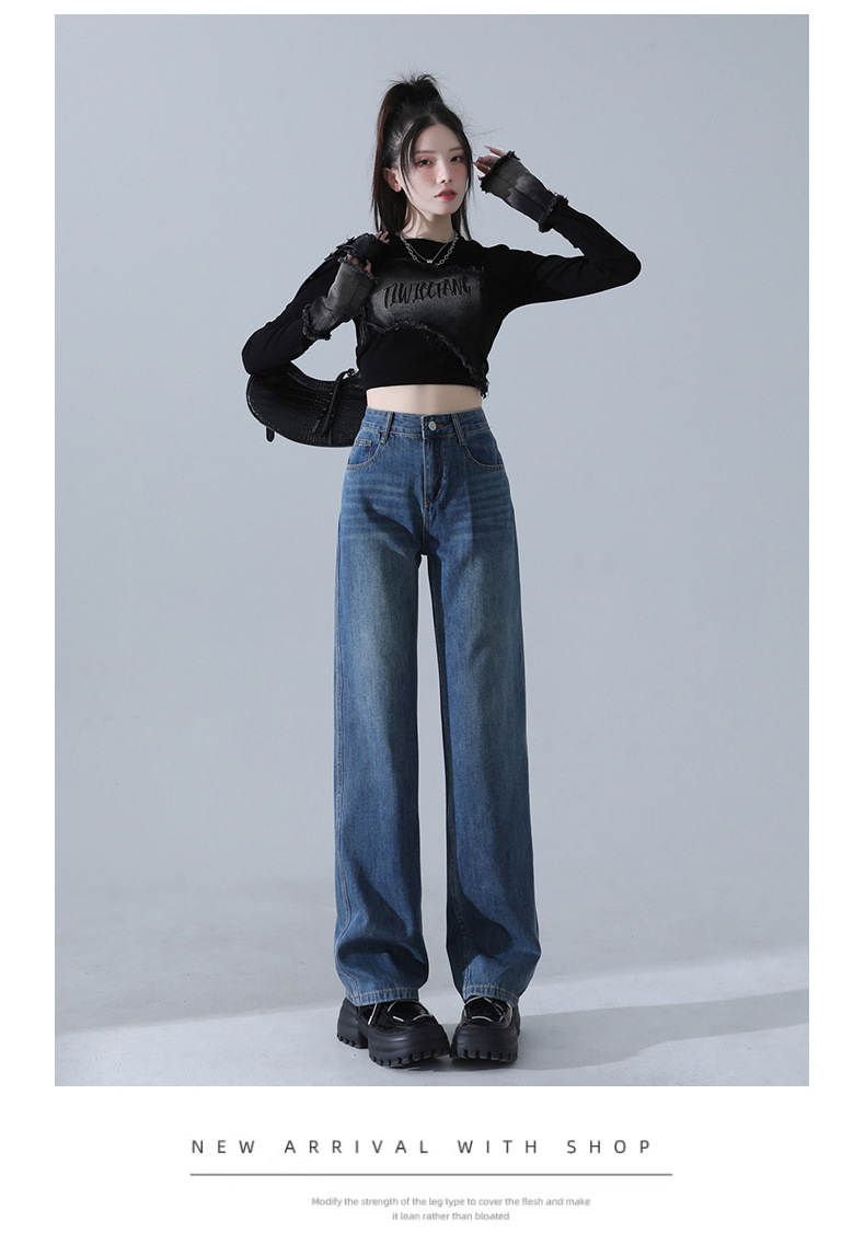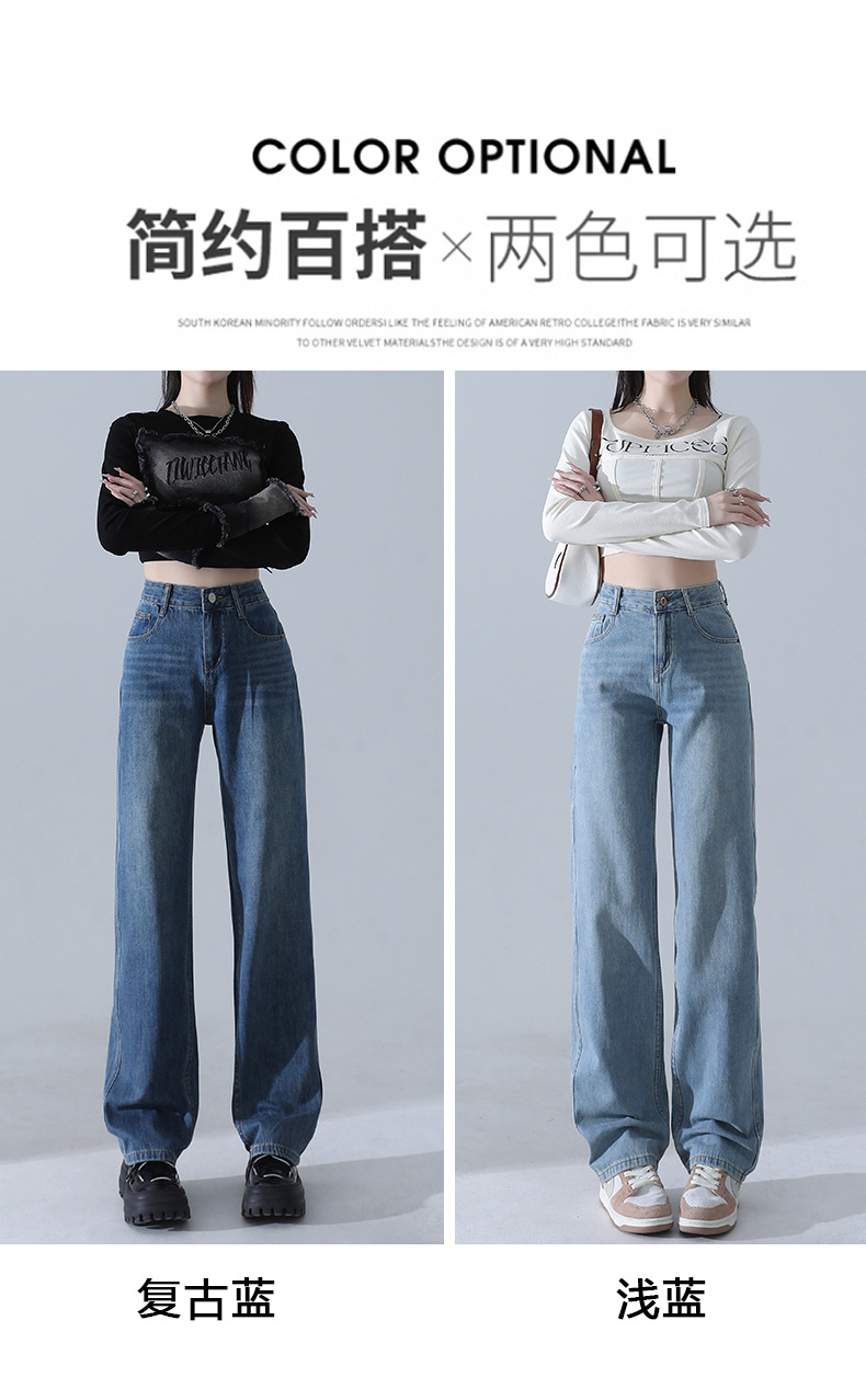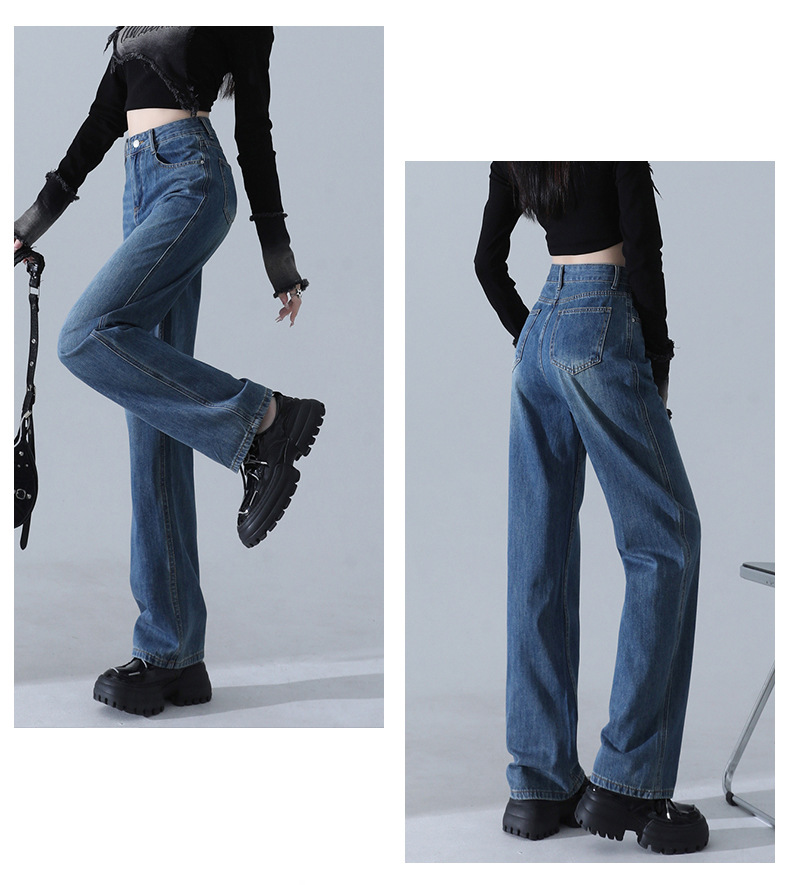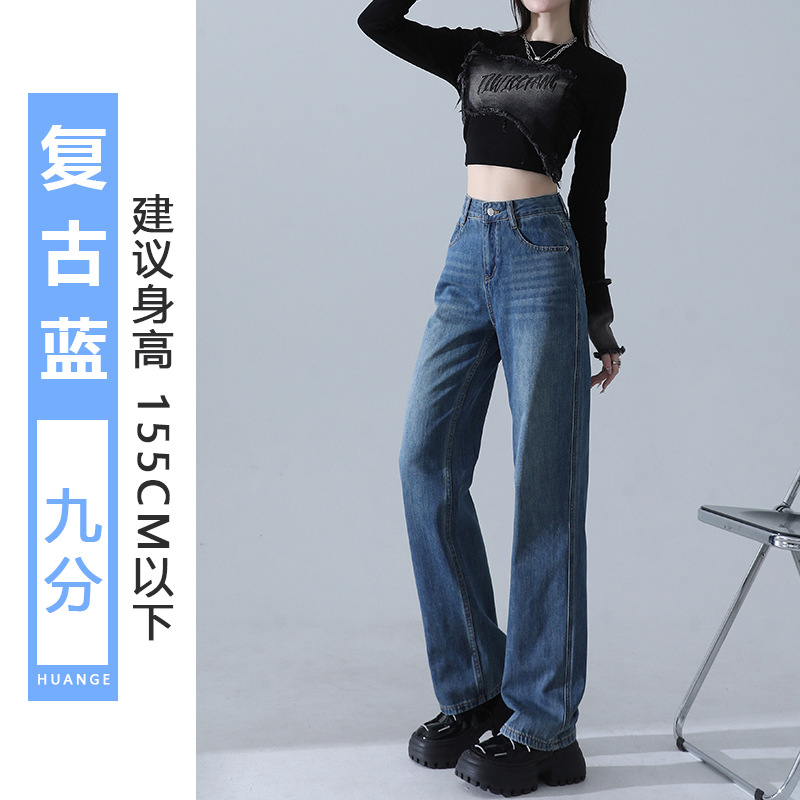 레트로 블루 슬림핏 와이드 레그 팬츠 여성용 청바지 2026년 봄 신상 하이웨이스트 슬림핏 드레이프 루즈핏 스트레이트 팬츠스토어 가기