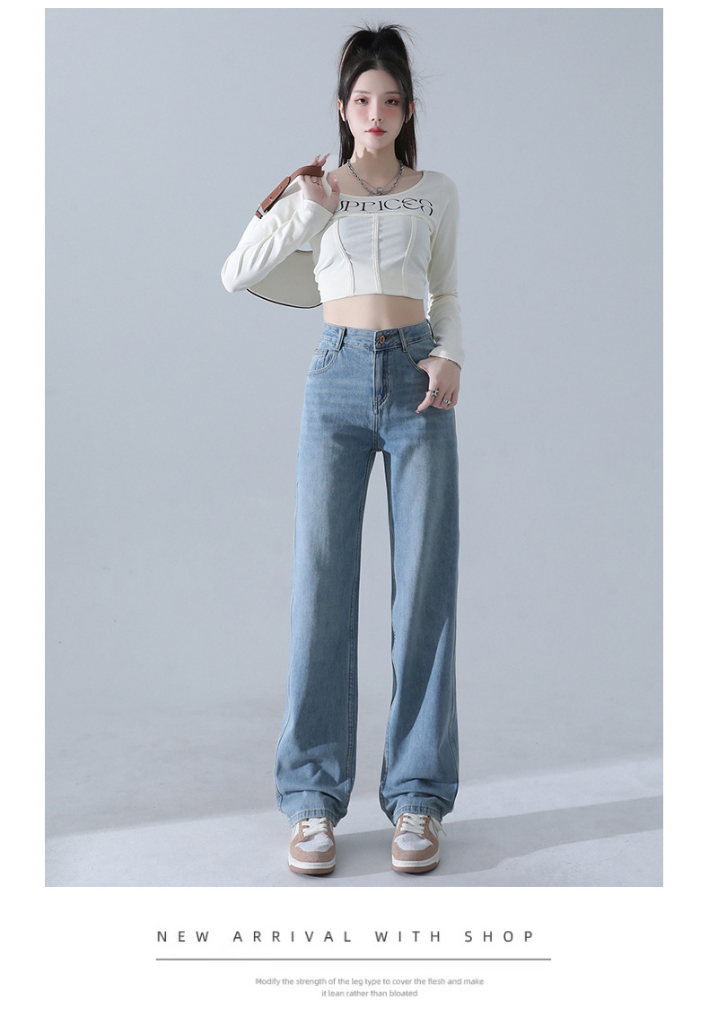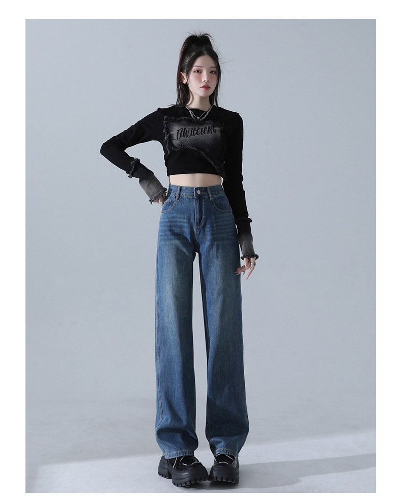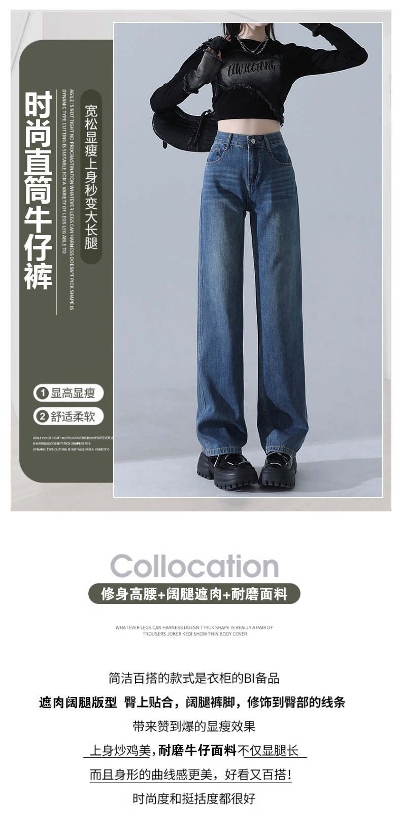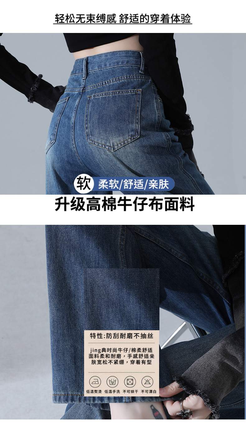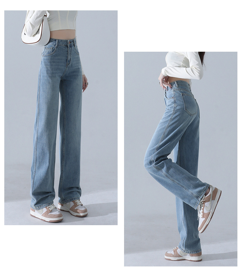 레트로 블루 슬림핏 와이드 레그 팬츠 여성용 청바지 2026년 봄 신상 하이웨이스트 슬림핏 드레이프 루즈핏 스트레이트 팬츠스토어 가기