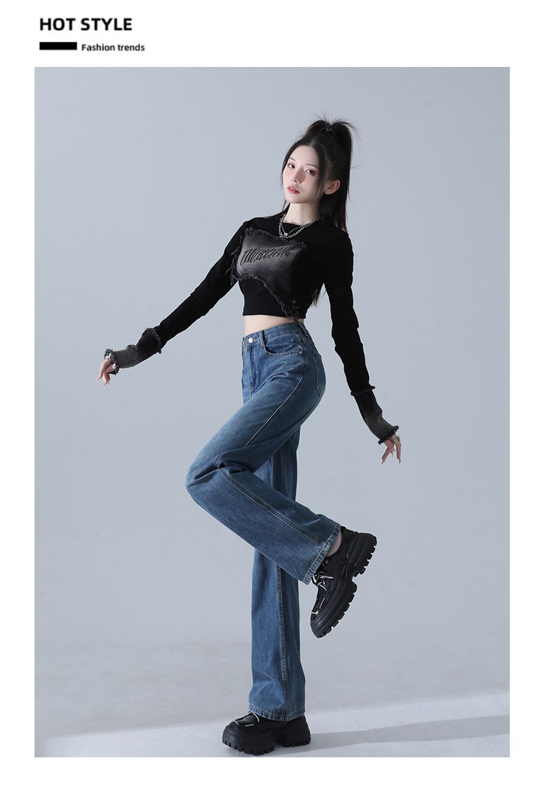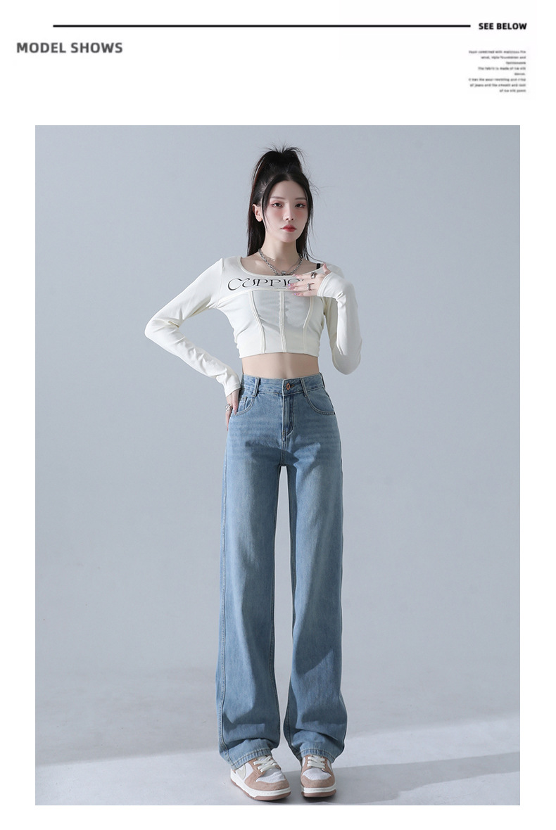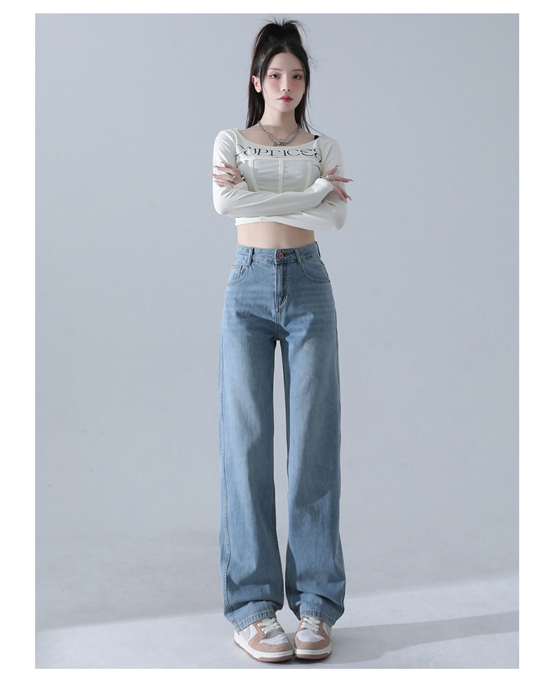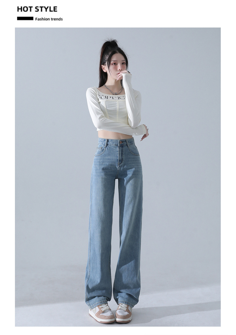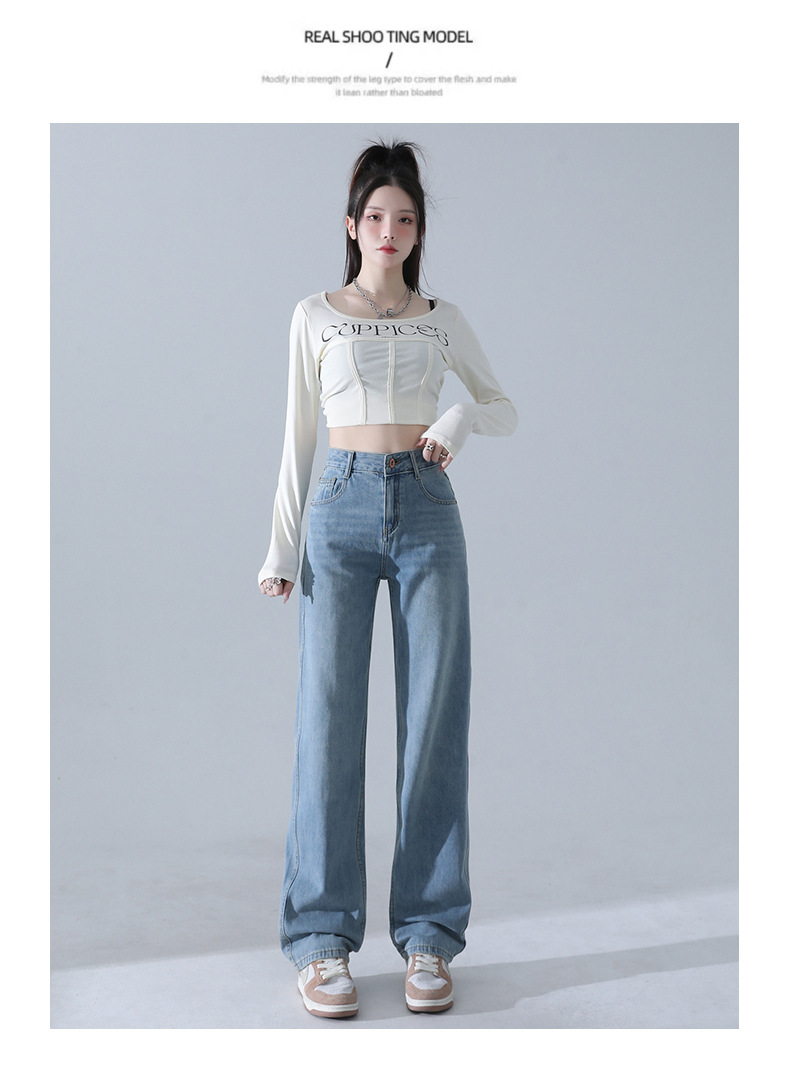 레트로 블루 슬림핏 와이드 레그 팬츠 여성용 청바지 2026년 봄 신상 하이웨이스트 슬림핏 드레이프 루즈핏 스트레이트 팬츠스토어 가기