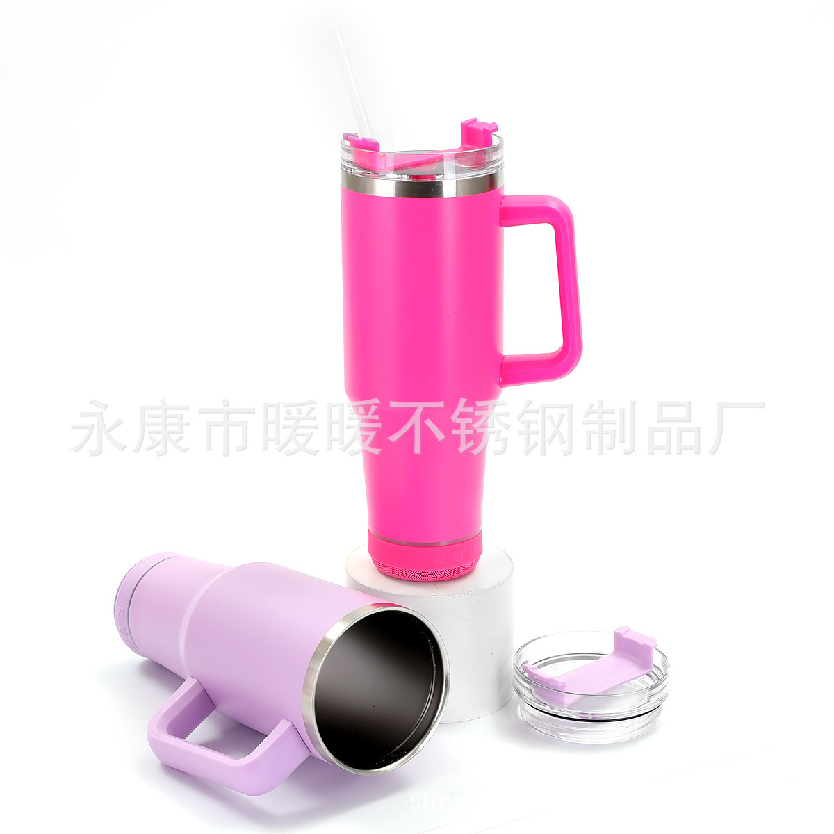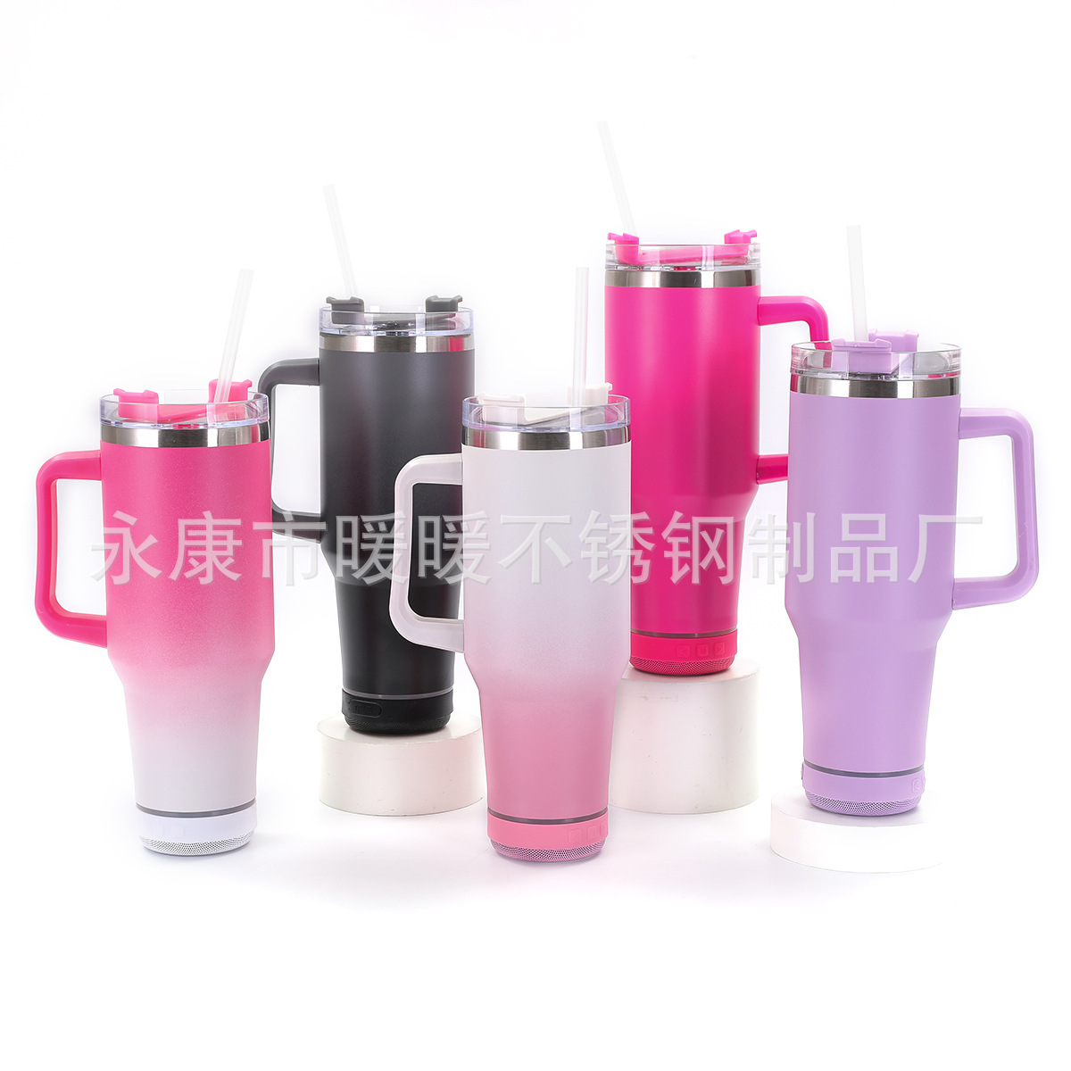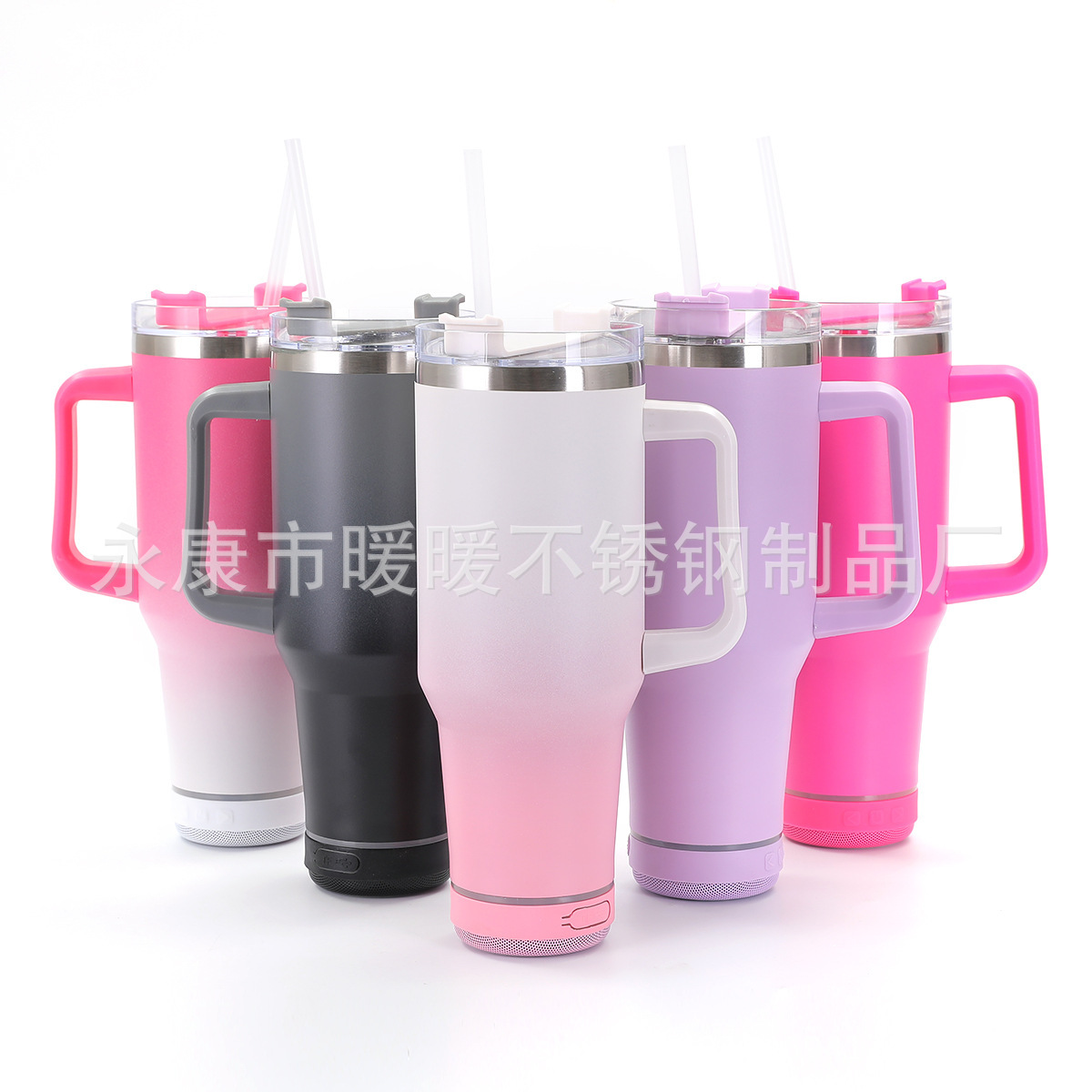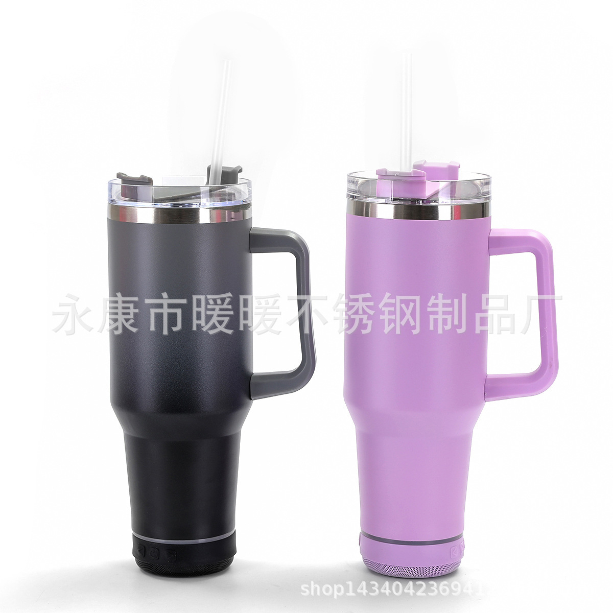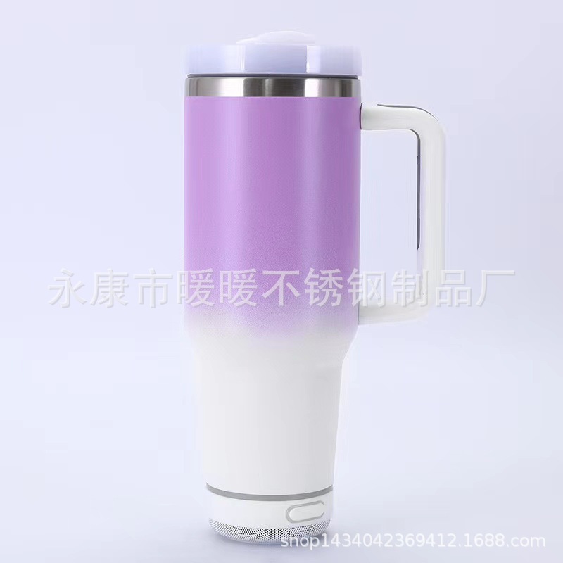 아마존 폭발 40oz 자동차 컵 304 스테인레스 스틸 보온병 컵 휴대용 핸들 컵 블루투스 스피커 흡입 컵