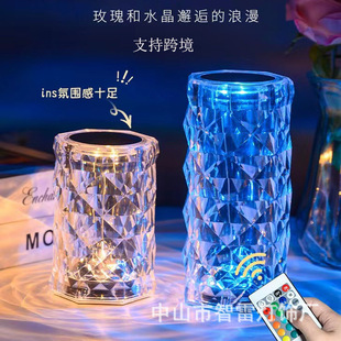 跨境玫瑰音响触摸式台灯水晶氛围灯现代简约床头花形PC拍拍小夜灯