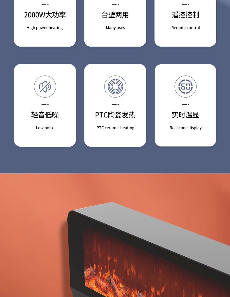 제조업체 신형 벽걸이형 전기 벽난로 소형 탁상용 히터 모조 불꽃 산난로스토어 가기