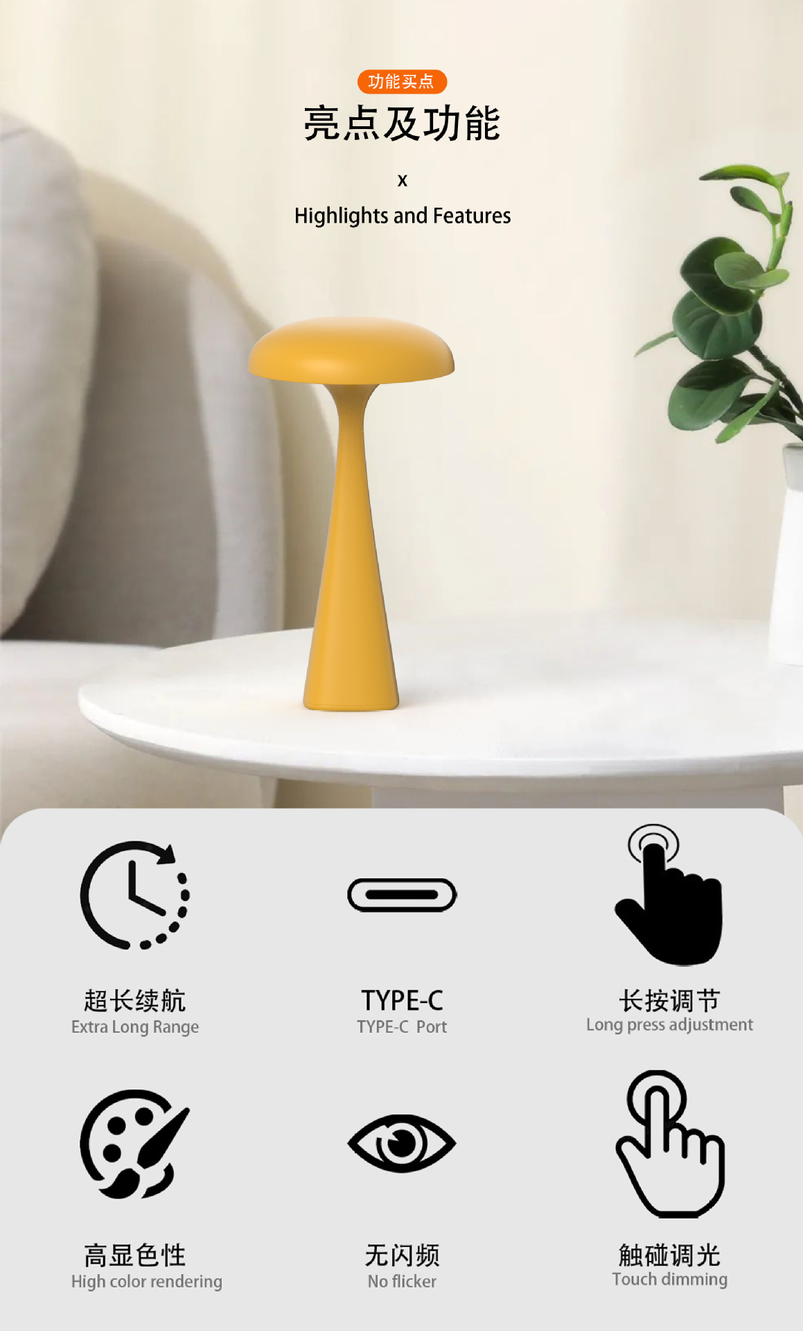새로운 창조적 인 해파리 버섯 테이블 램프 바 식탁 램프 USB 충전 터치 분위기 장식 야간 조명