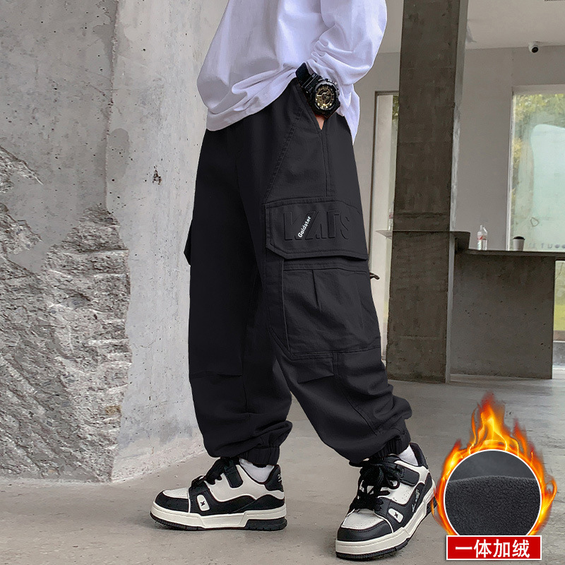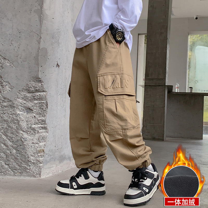 남아용 플리스 작업복 바지 가을 겨울 2025 신상 아동 겨울 바지 큰 아이 남아용 플리스 일체형 캐주얼 긴바지스토어 가기