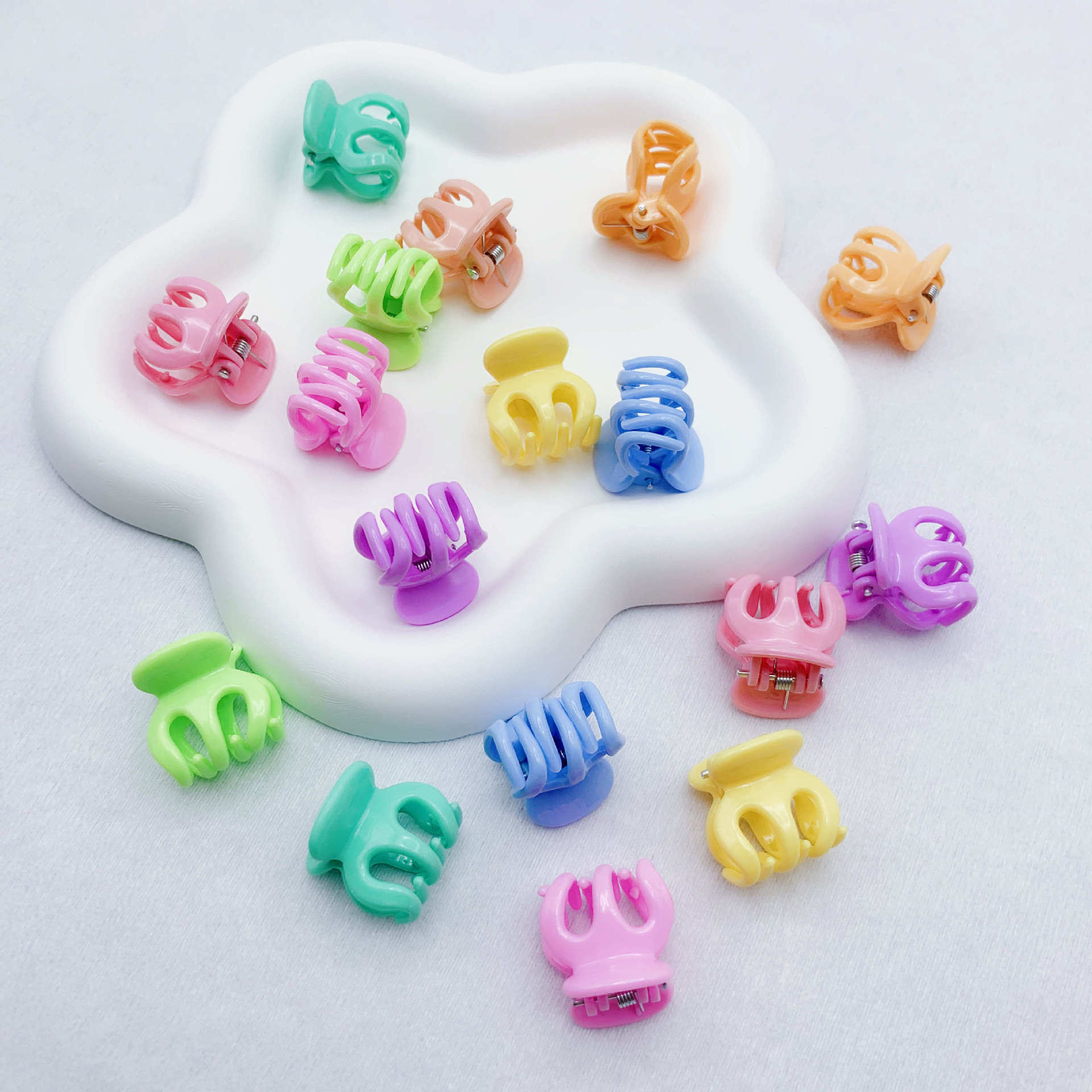 한국 스타일 컬러풀 미니 집게핀 어린이 헤어핀 헤어 액세서리 앞머리 옆머리 집게핀 나비 꽃 모양 작은 집게핀 액세서리 도매