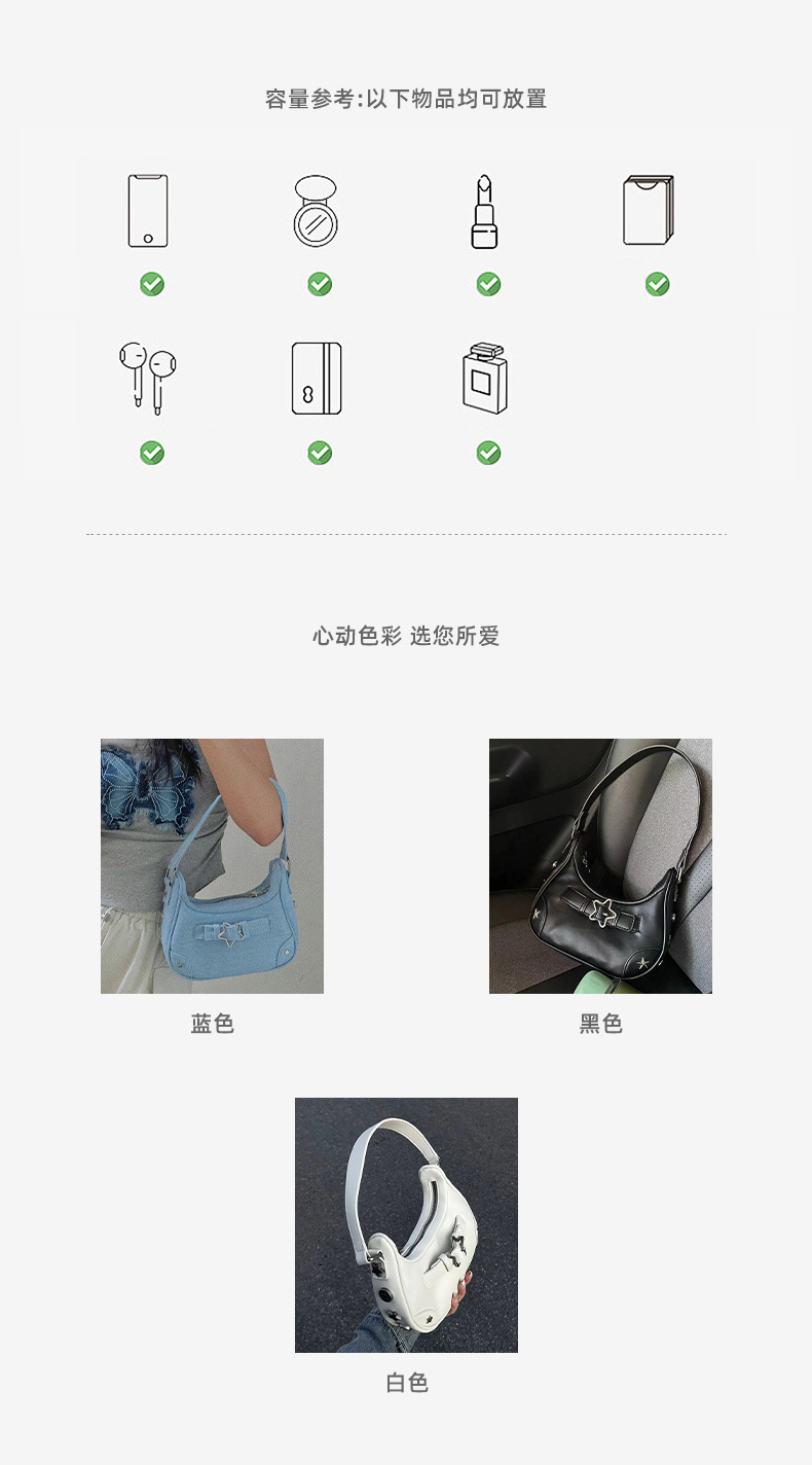 2025 여름 미국 뜨거운 여자 다섯개 별 겨드랑이 가방 여성 밀레니엄 스타일 핸드백 틈새 디자인 어깨 가방스토어 가기