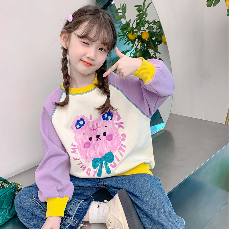 여자 운동복 2025 봄과 가을 새로운 유행 긴팔 루즈 탑 여자 봄 옷 인터넷 연예인 아동복 귀여운스토어 가기