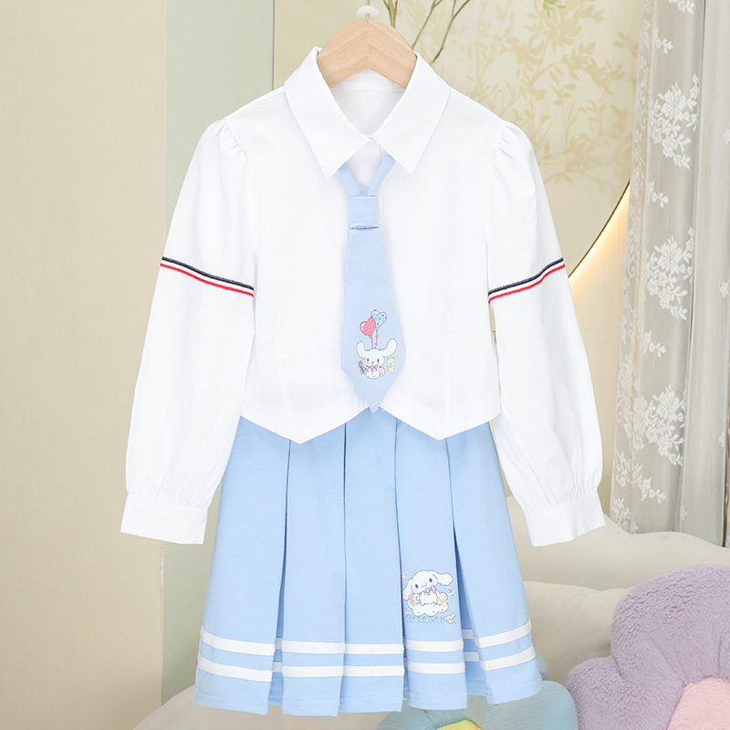 2024 가을과 겨울 소녀 3 피스 어린이 서양식 올 매치 아우터웨어 세트 jk 주름 치마 셔츠 코트 아동복