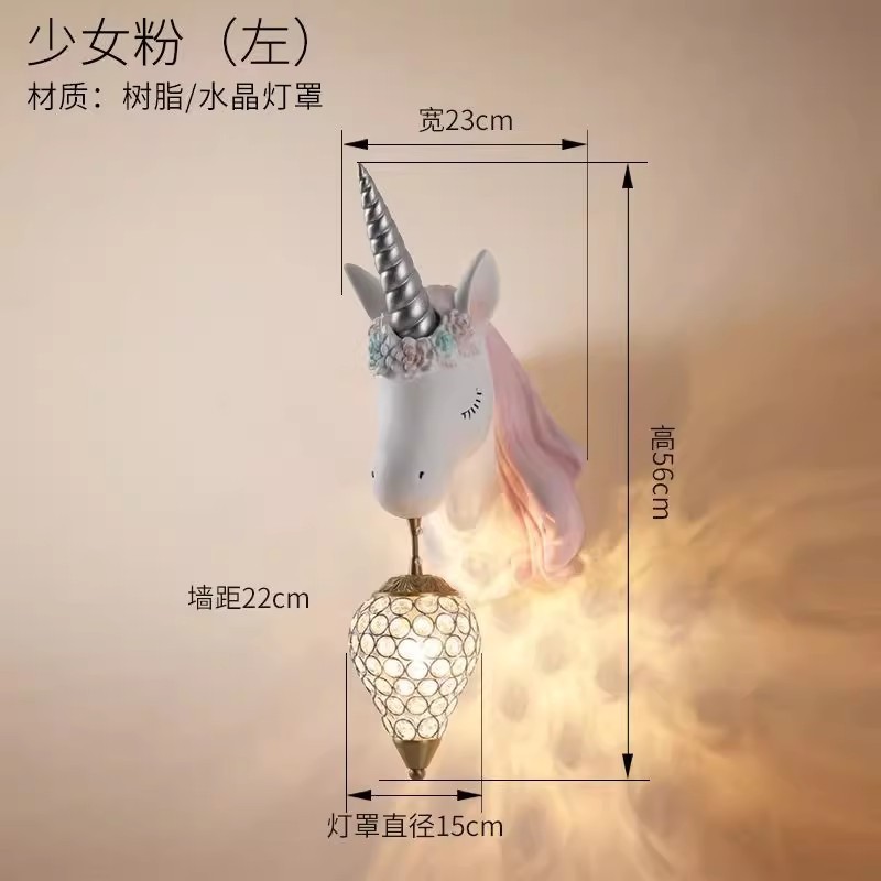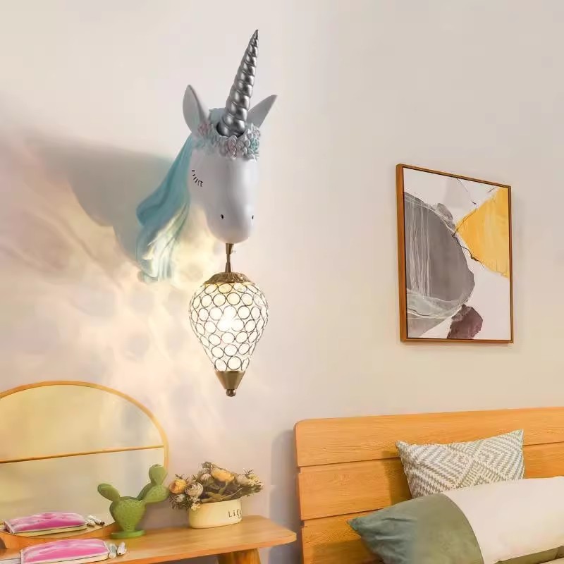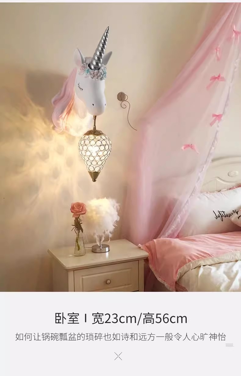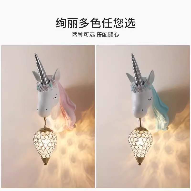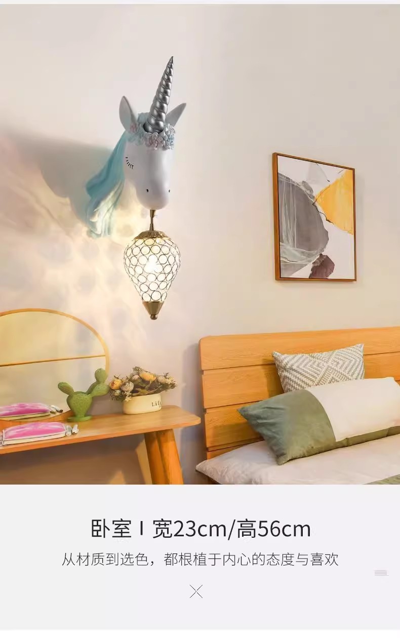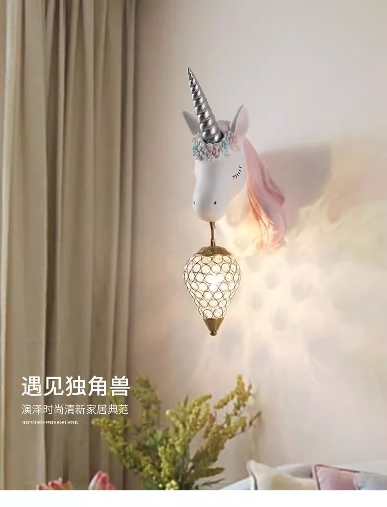 국경 간 북유럽 성격 유니콘 귀여운 만화 창조적 인 어린이 방 침대 계단 통로 연구 벽 램프스토어 가기