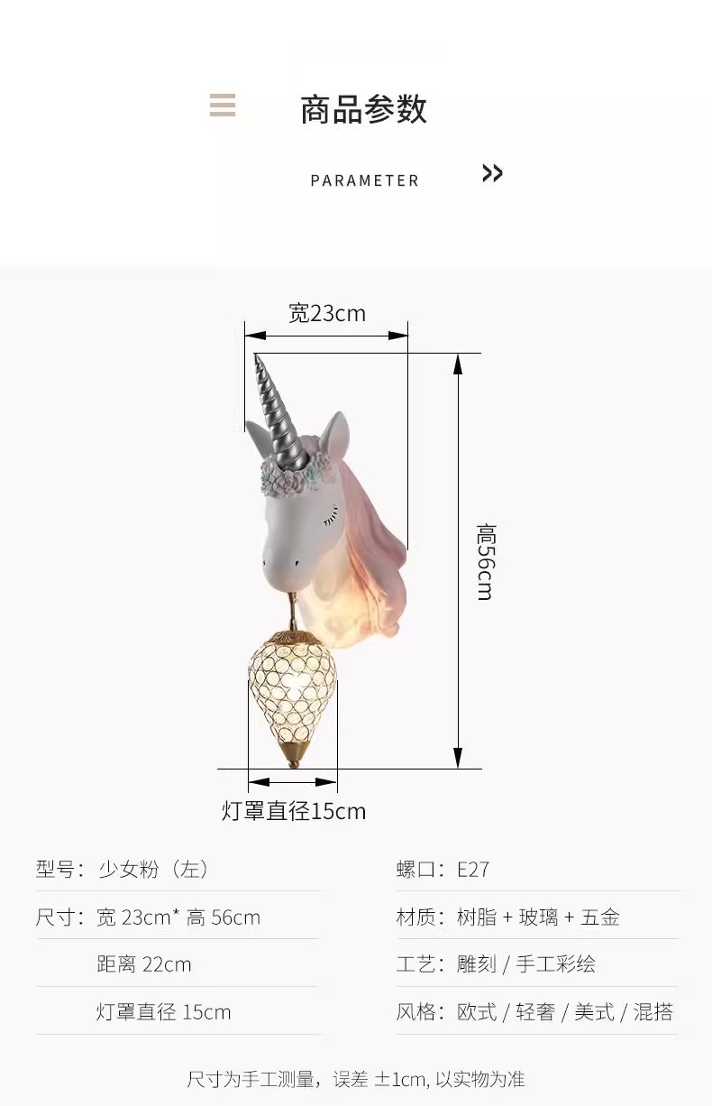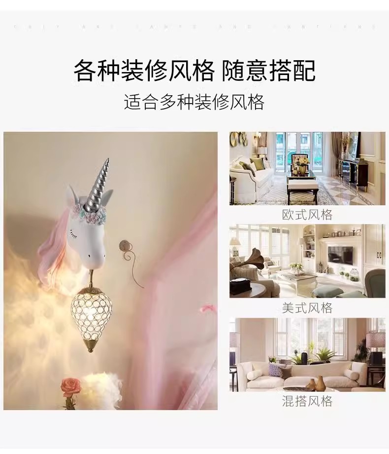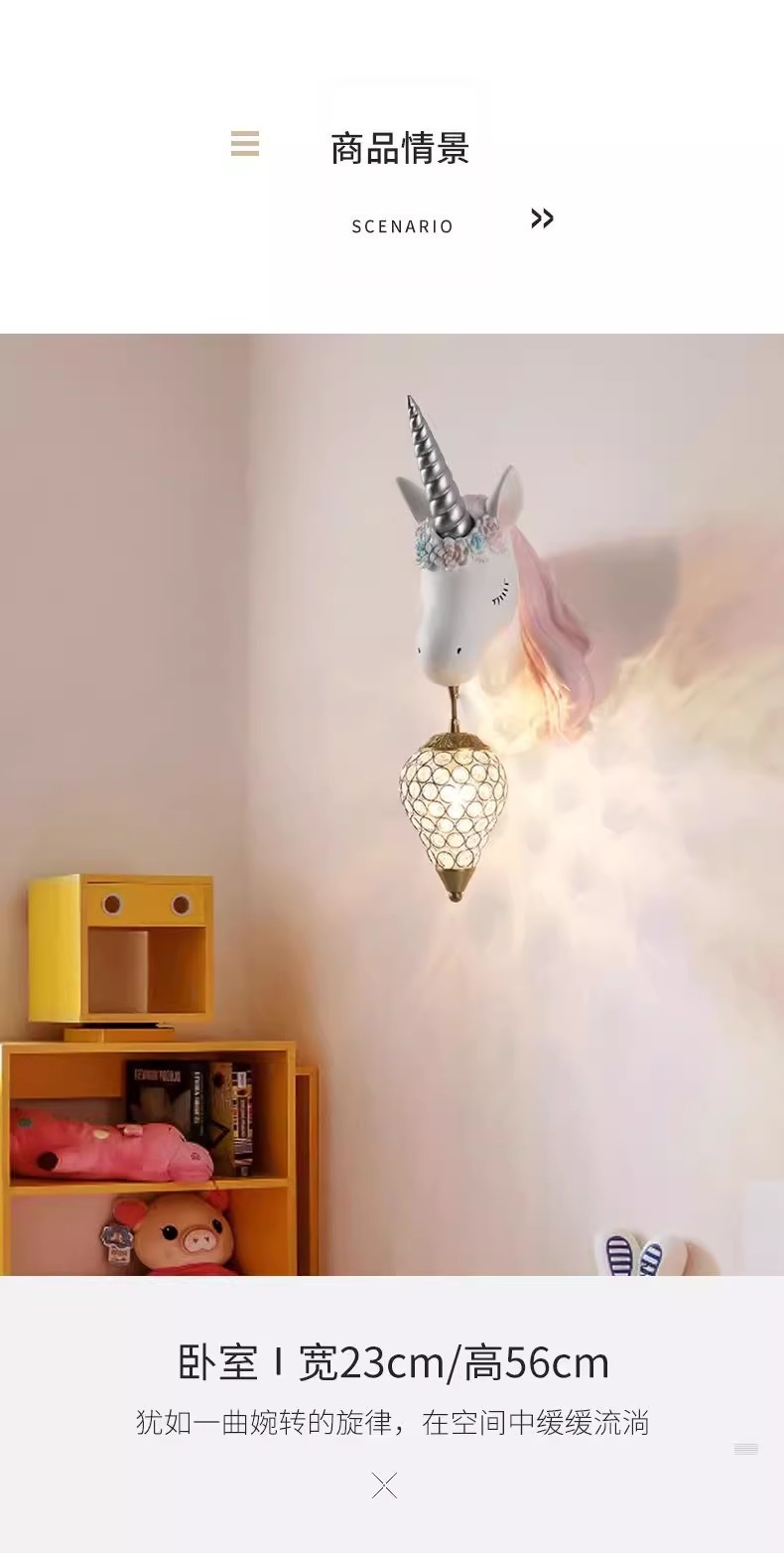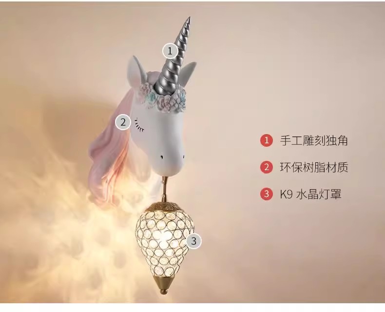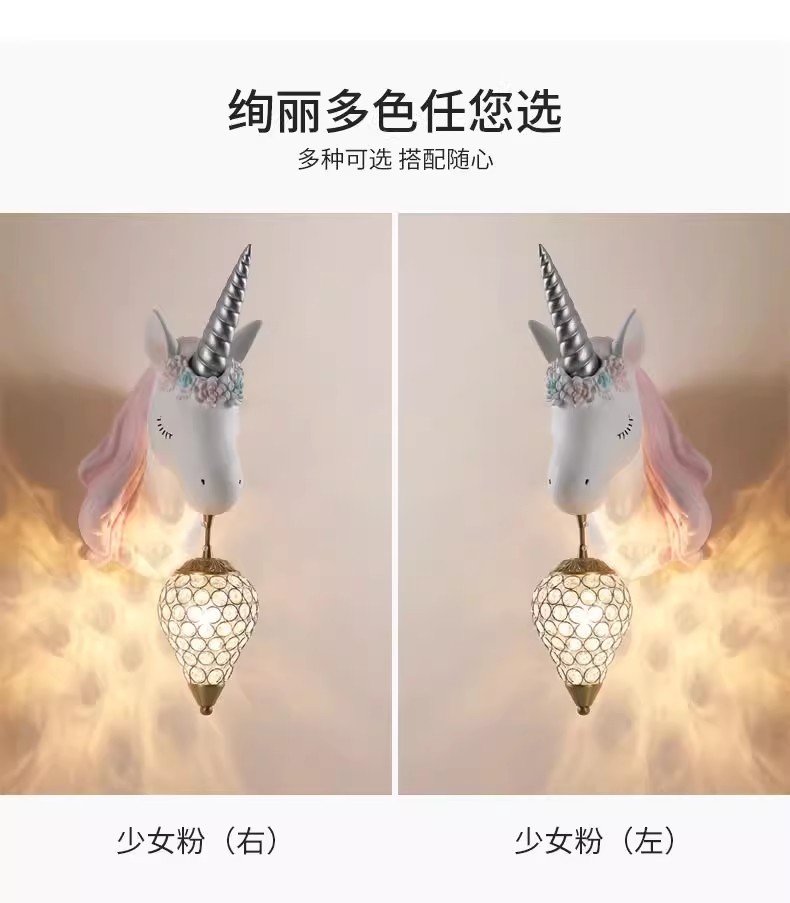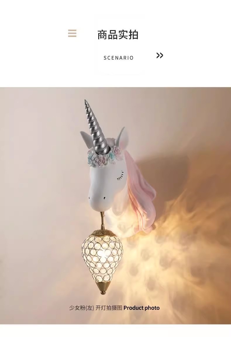 국경 간 북유럽 성격 유니콘 귀여운 만화 창조적 인 어린이 방 침대 계단 통로 연구 벽 램프스토어 가기