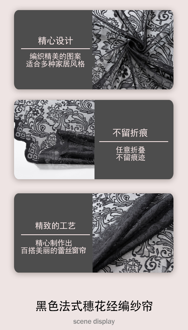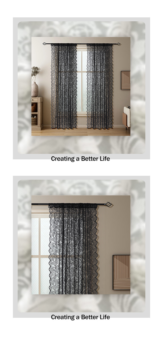 1pc 프렌치 레트로 레이스 블랙 거즈 커튼 거실 및 침실 장식 창 화면 비 천공 파티션 거즈 커튼스토어 가기