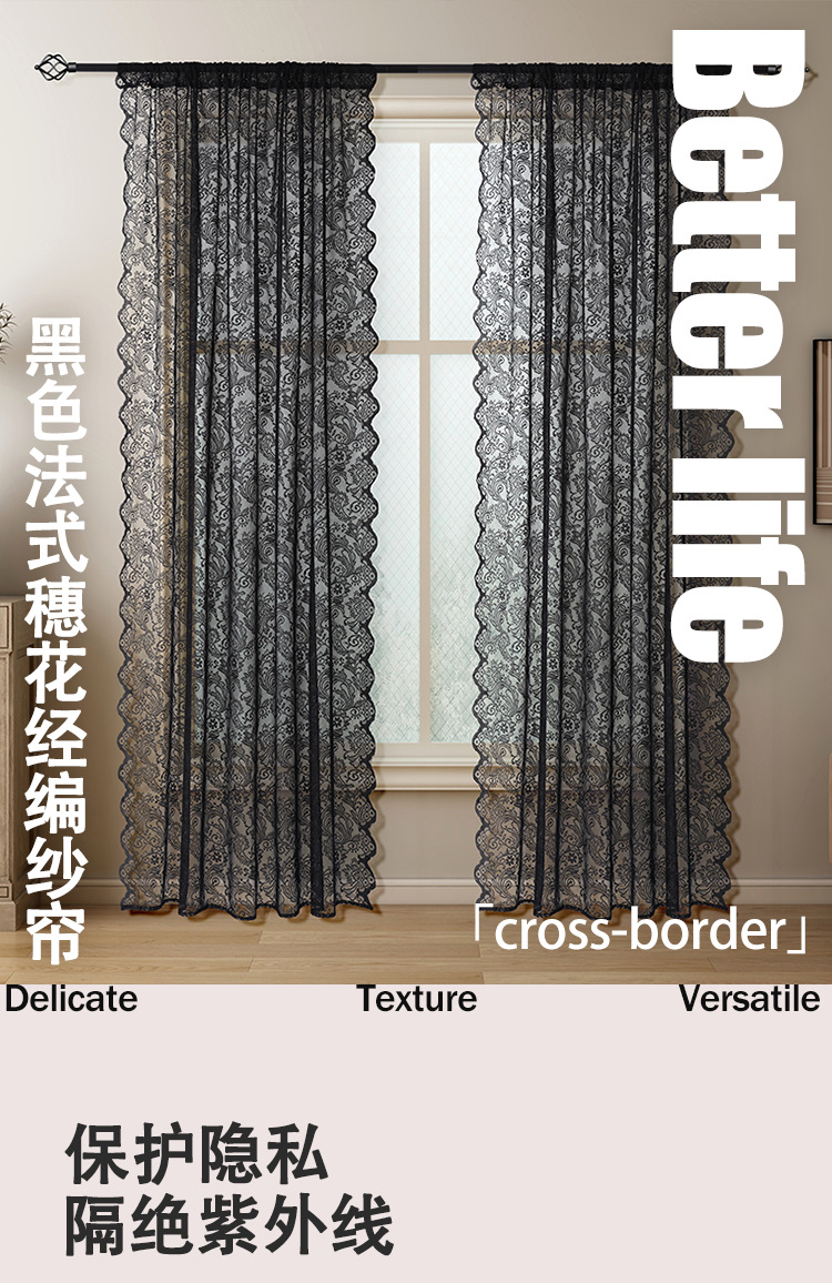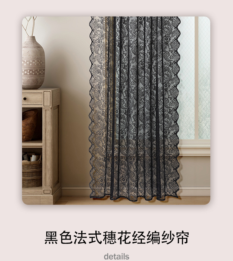 1pc 프렌치 레트로 레이스 블랙 거즈 커튼 거실 및 침실 장식 창 화면 비 천공 파티션 거즈 커튼
