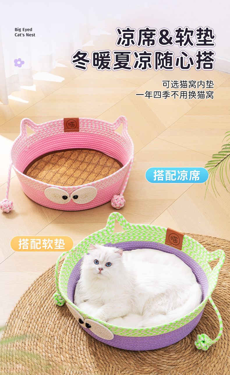 사계절 동안 잠자는 고양이 둥지 고양이 통증 매트 등나무 고양이의 둥지 여름 고양이 침대 애완견 매트스토어 가기