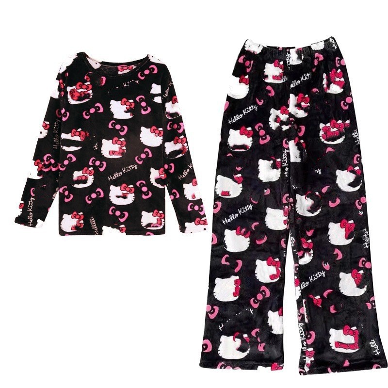 2024 년 새로운 만화 겨울 착용 할 수있는 홈 의류 세트 기모 두꺼운 잠옷 여성의 가을과 겨울 플란넬