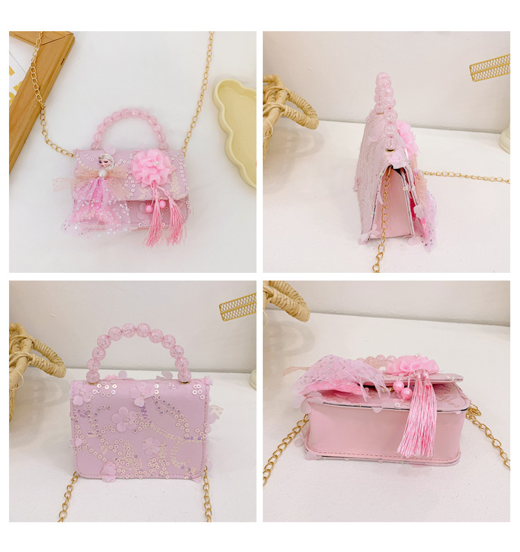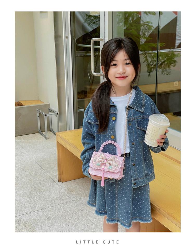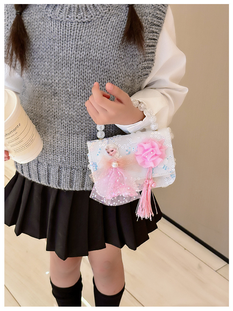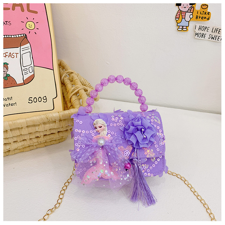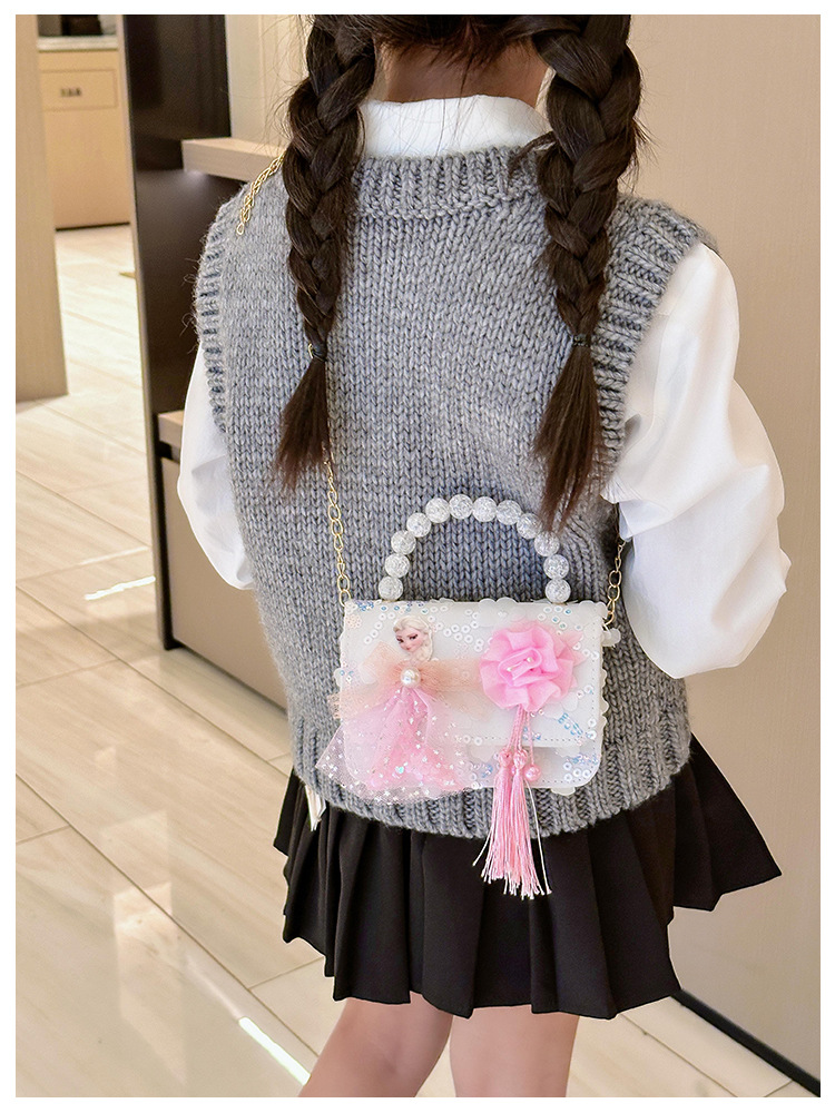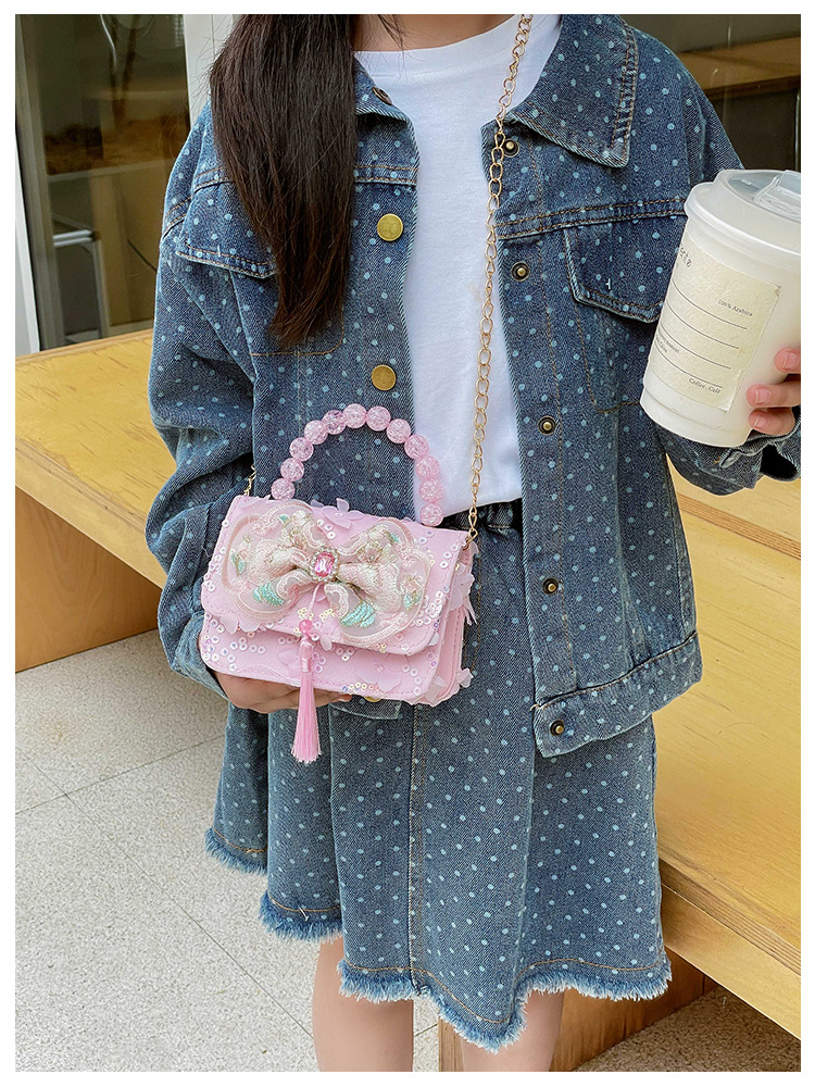 가을 겨울 신상품 어린이 가방, 공주풍 고급스러운 반짝이 핸드백, 여성스러운 체인 크로스백 동전 지갑스토어 가기