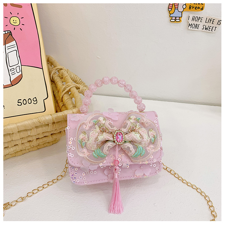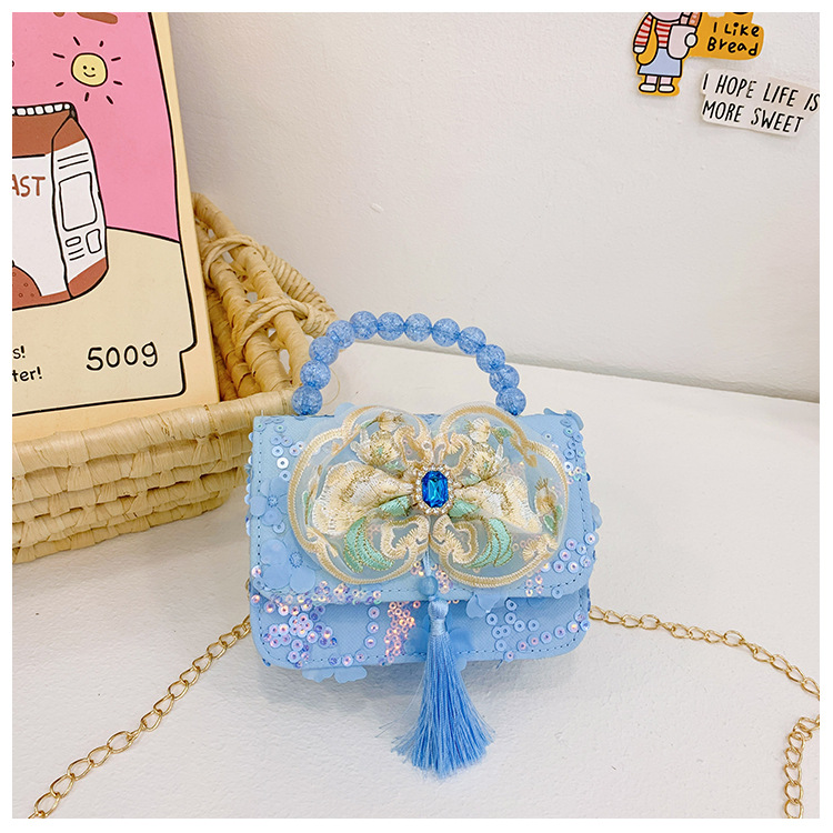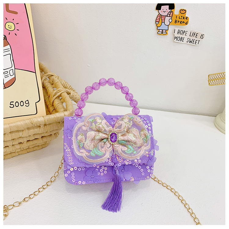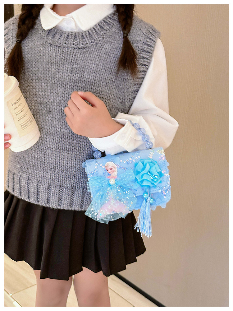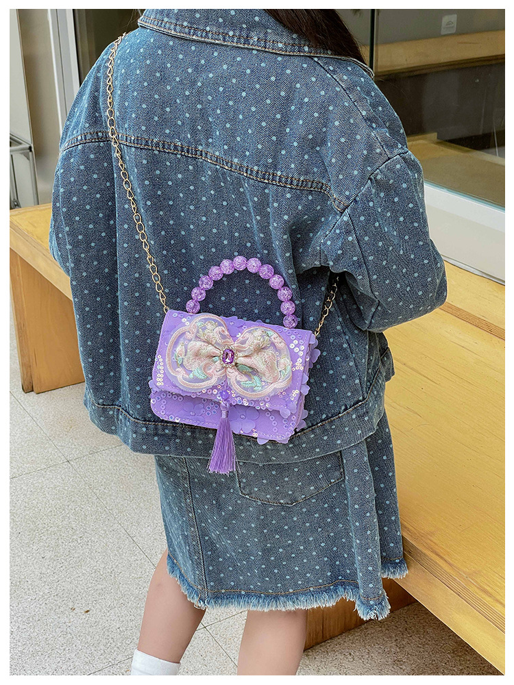 가을 겨울 신상품 어린이 가방, 공주풍 고급스러운 반짝이 핸드백, 여성스러운 체인 크로스백 동전 지갑