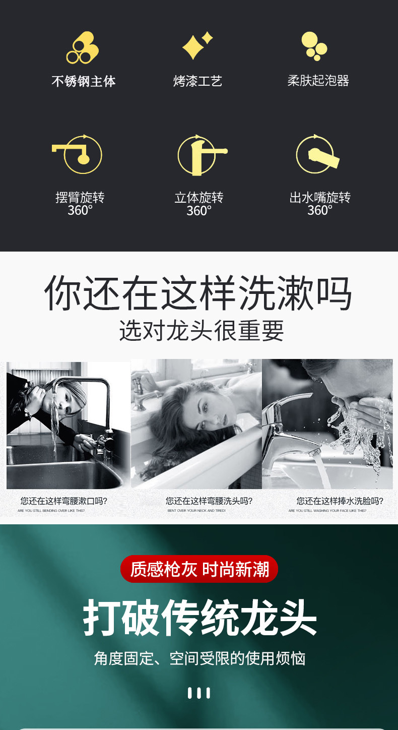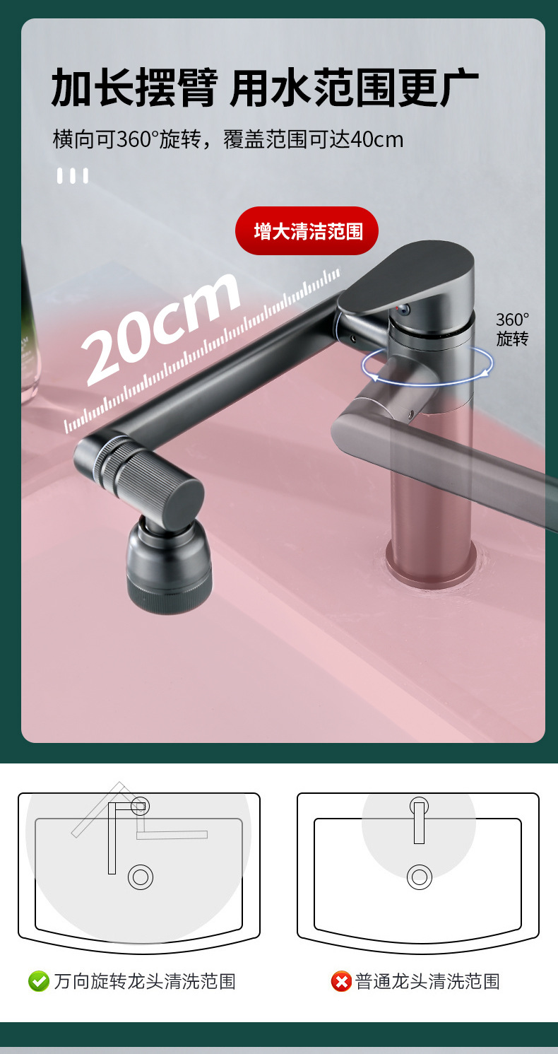 Luckcat 뜨겁고 차가운 분지 수도꼭지 모든 구리 기본 세척 얼굴 화장실 유도 욕실 숨겨진 기계 팔 3