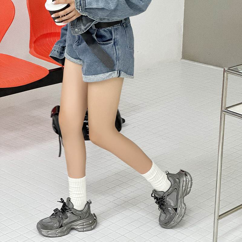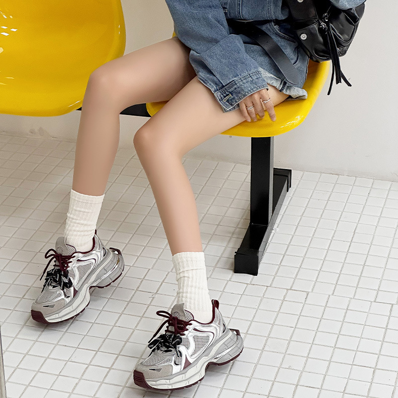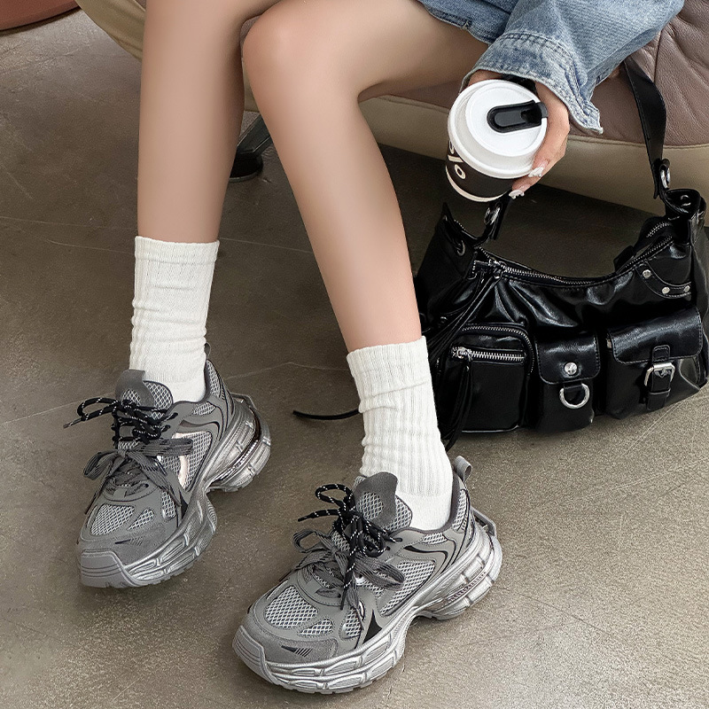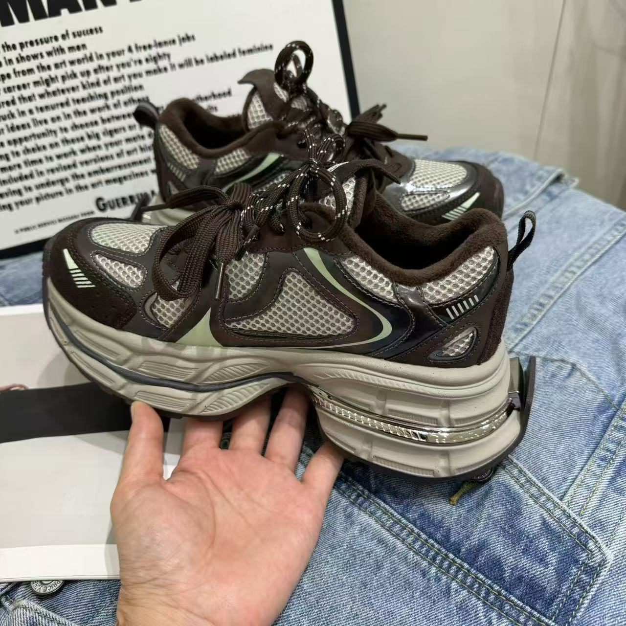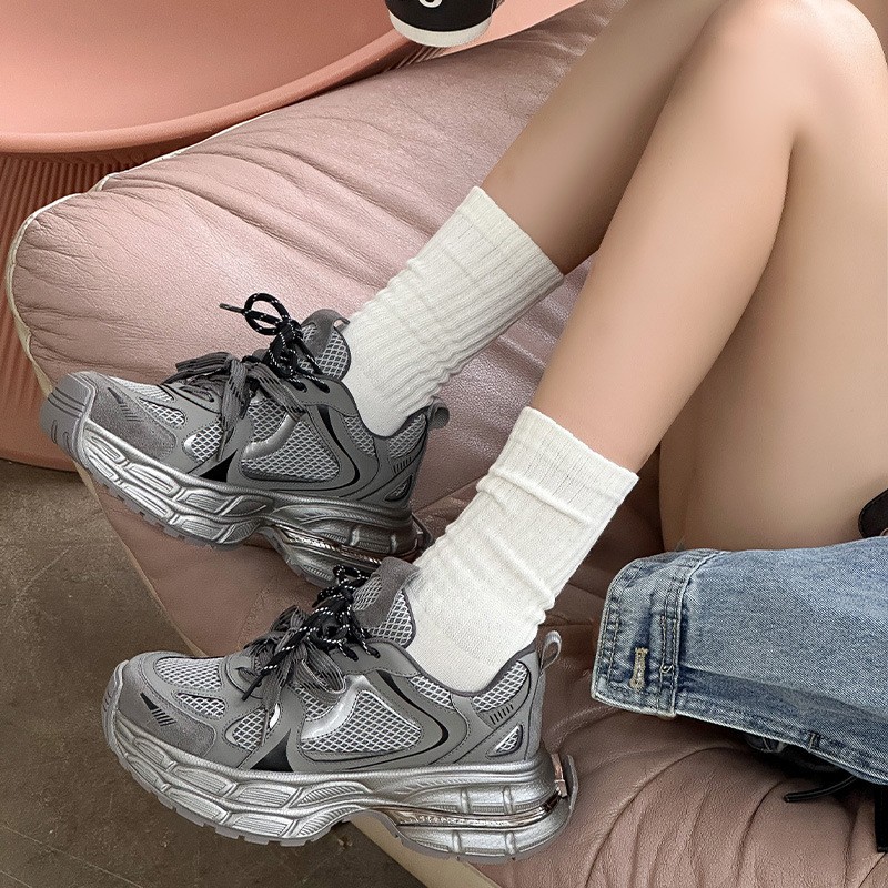 정품 가죽 두꺼운 밑창 토르 신발 여성의 2024 봄 작은 여성용 메쉬 통기성 운동화 서양식 올 매치 높이 증가 캐주얼 신발스토어 가기