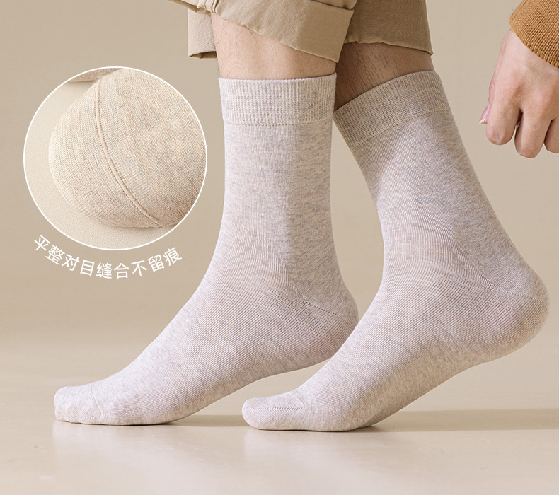 남성용 양말, 봄, 가을용 순면 중목 양말, 두꺼운 면 이중 바늘 남성용 항균, 탈취 겨울용 단색 스포츠 양말