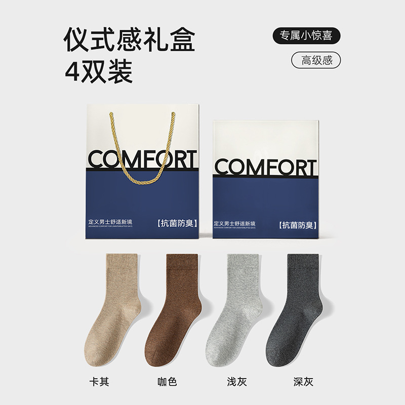• 카키+커피+라이트그레이+다크그레이 [선물박스, 선물가방, 4쌍]