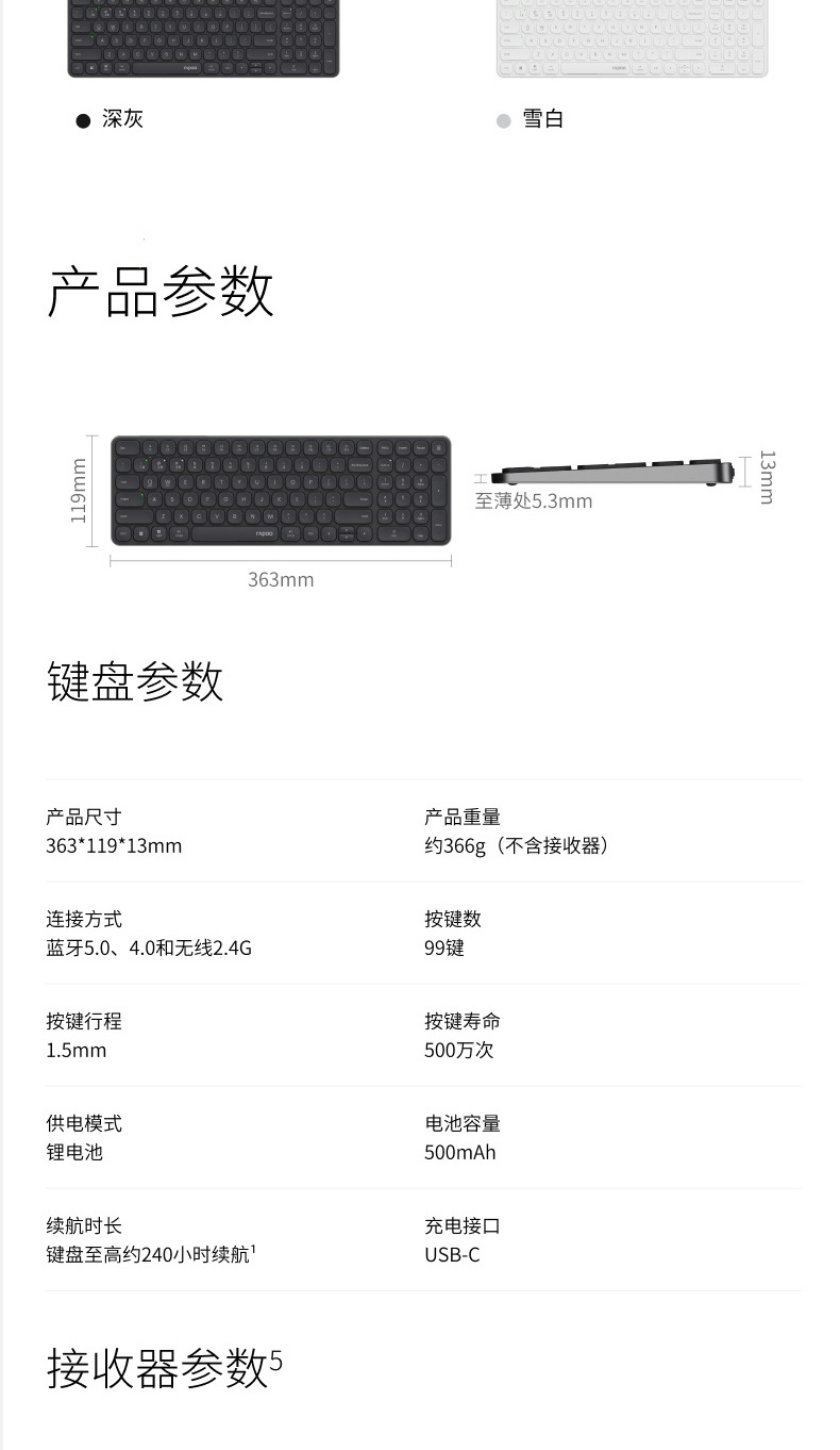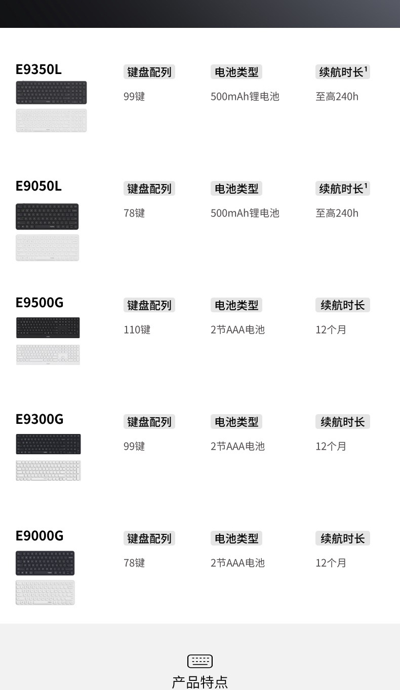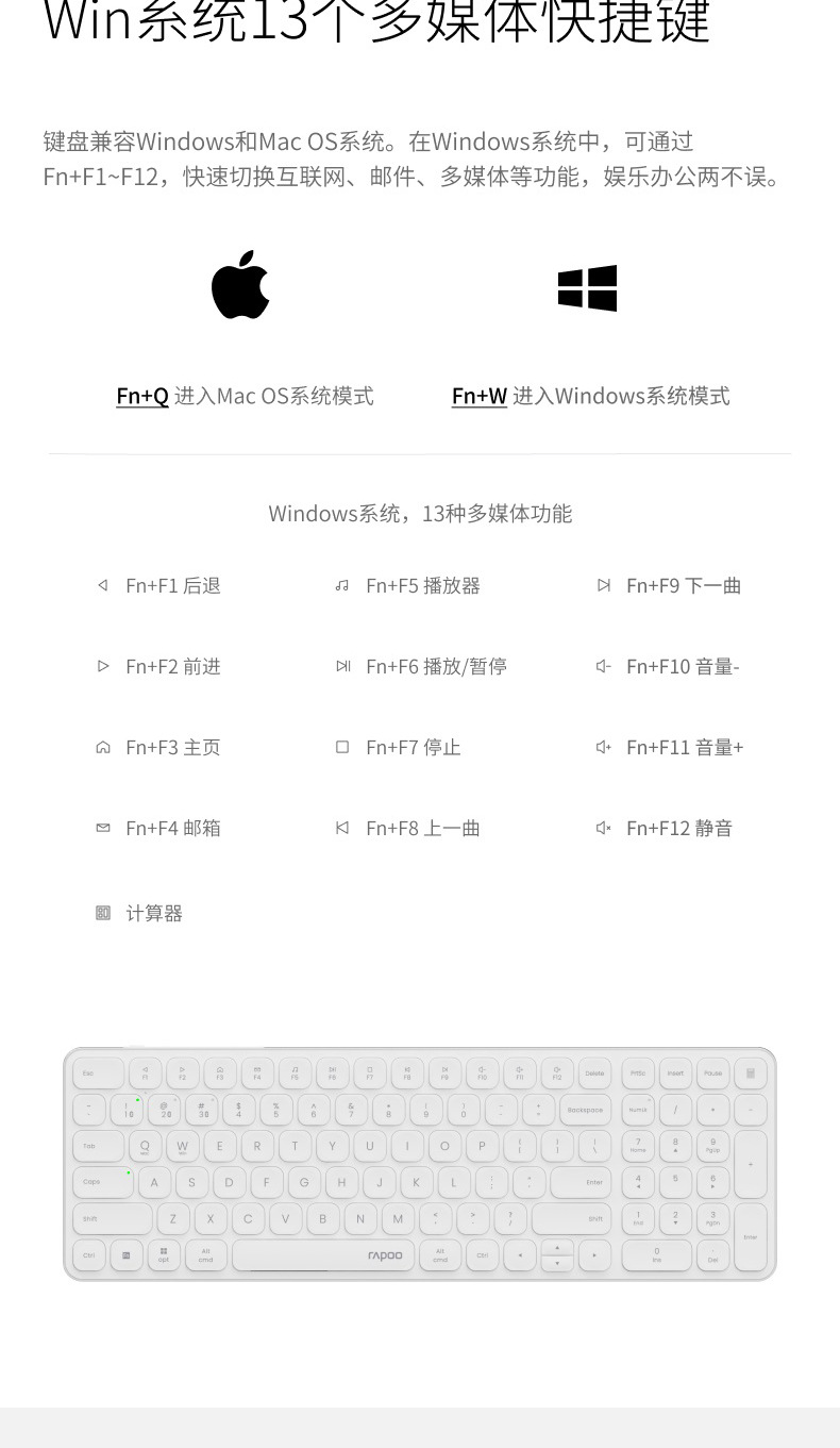 Rapoo E9350L 초박형 멀티 모드 블루투스 무선 충전 키보드 비즈니스 휴대용 사무실 홈 태블릿스토어 가기