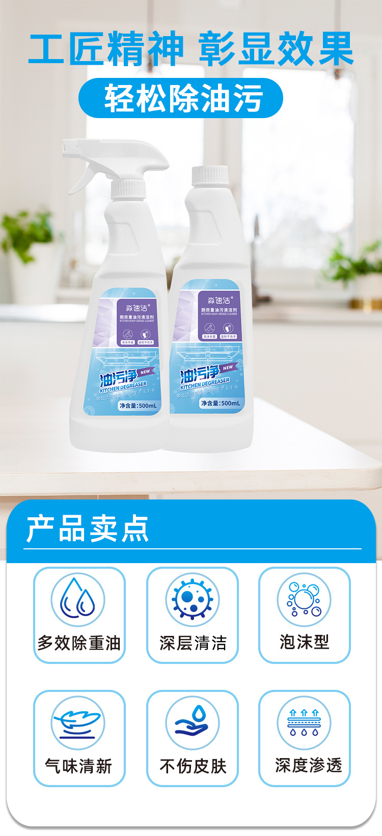 주방 오일 얼룩 청소기 범위 후드 청소 스프레이 500ml 가정용 오일 얼룩 청소기 도매스토어 가기