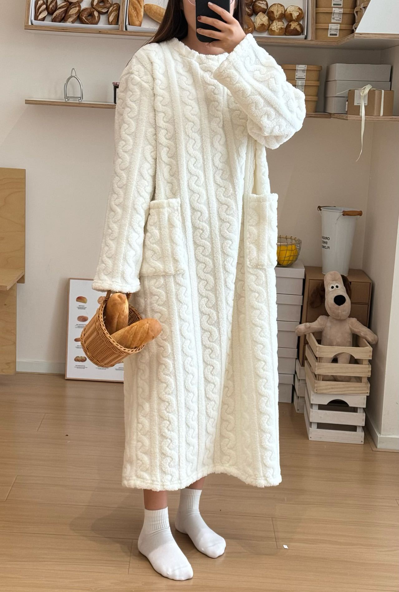 • 따뜻한 흰색 산호 벨벳 잠옷