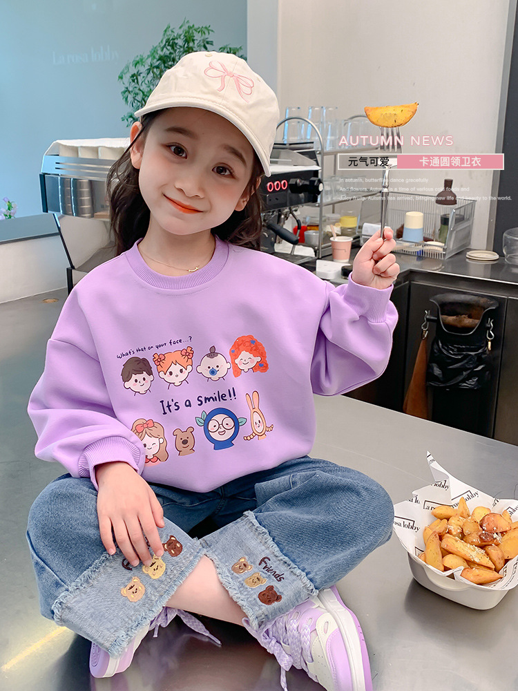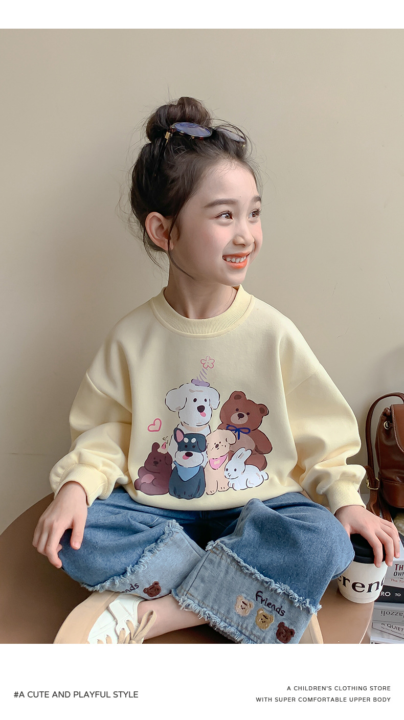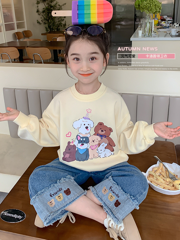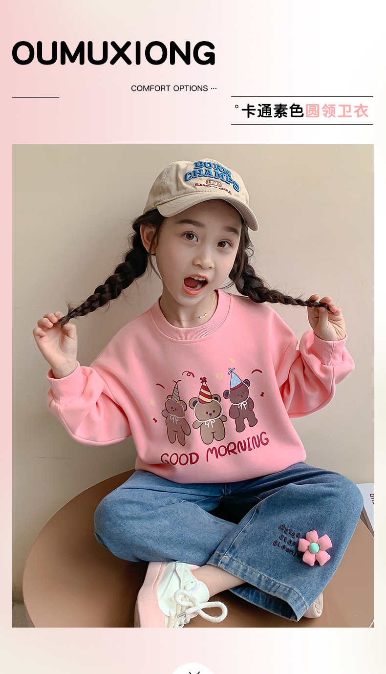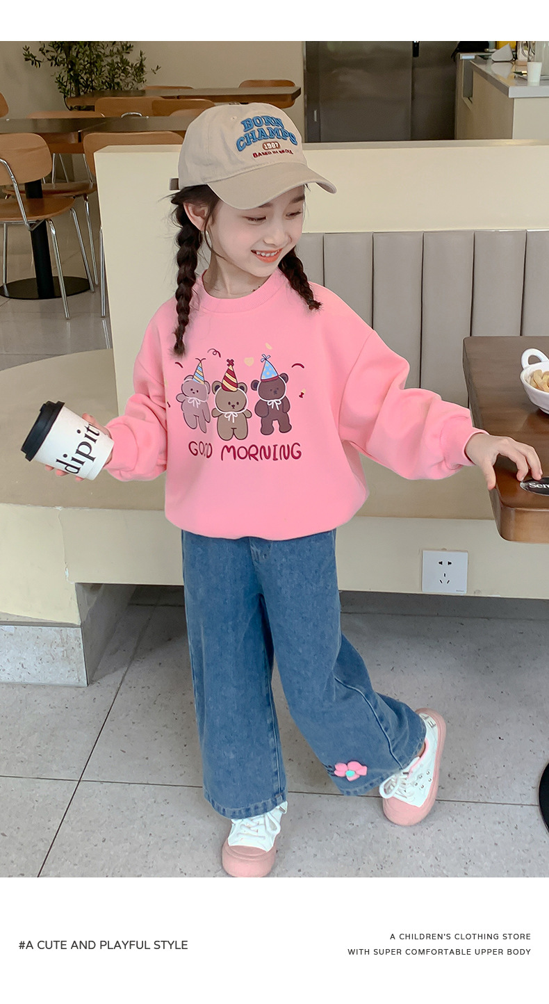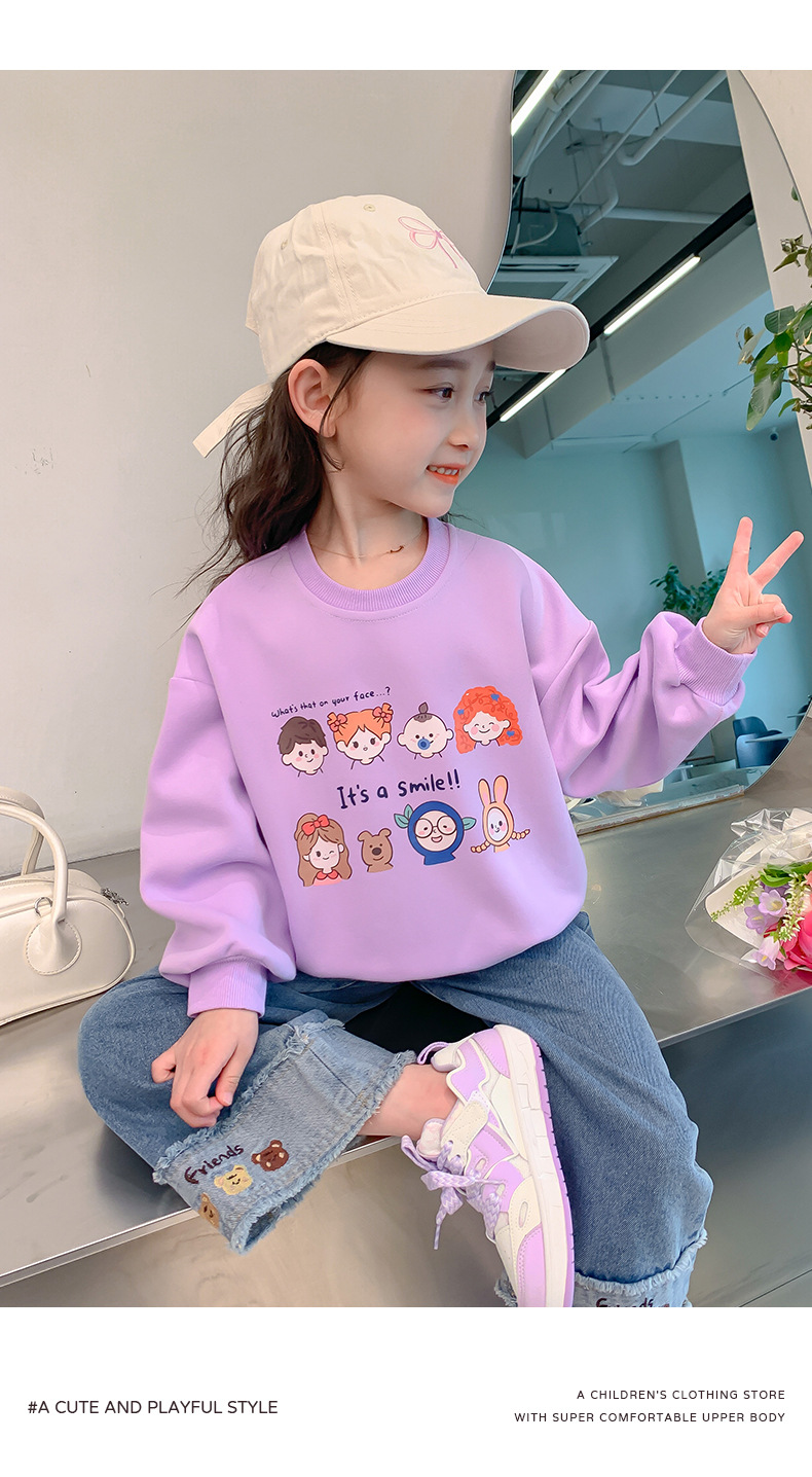 소녀의 땀 봄과 가을 2024 새로운 세련된 유행 여성의 아기 인터넷 축하 가을 최고 어린이 가을 옷스토어 가기