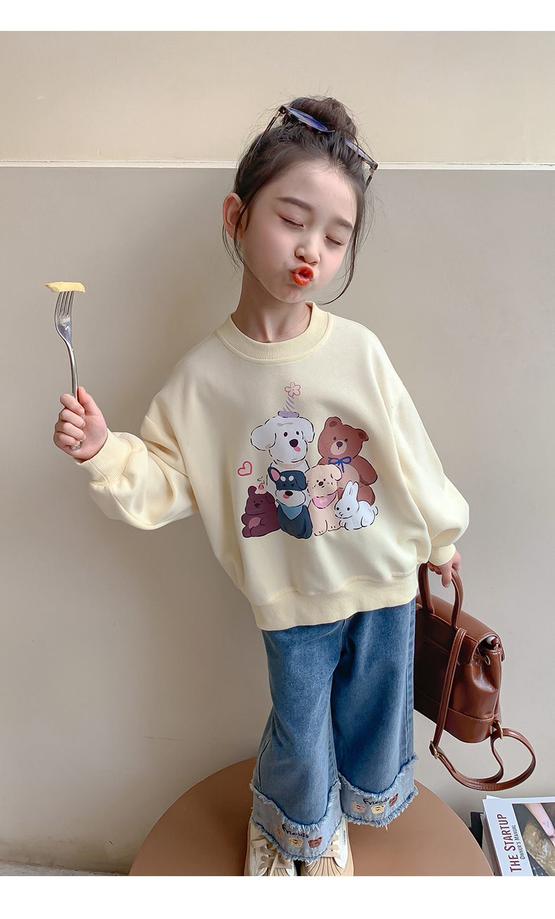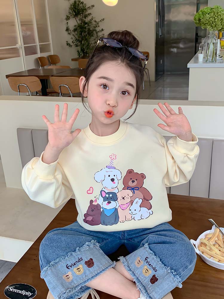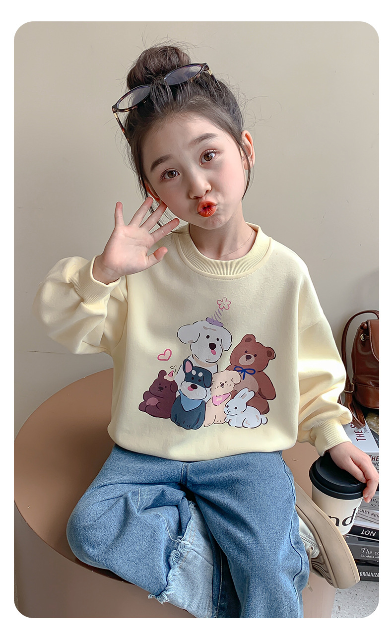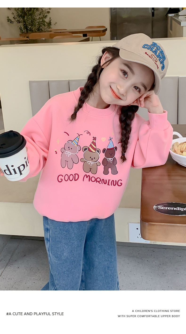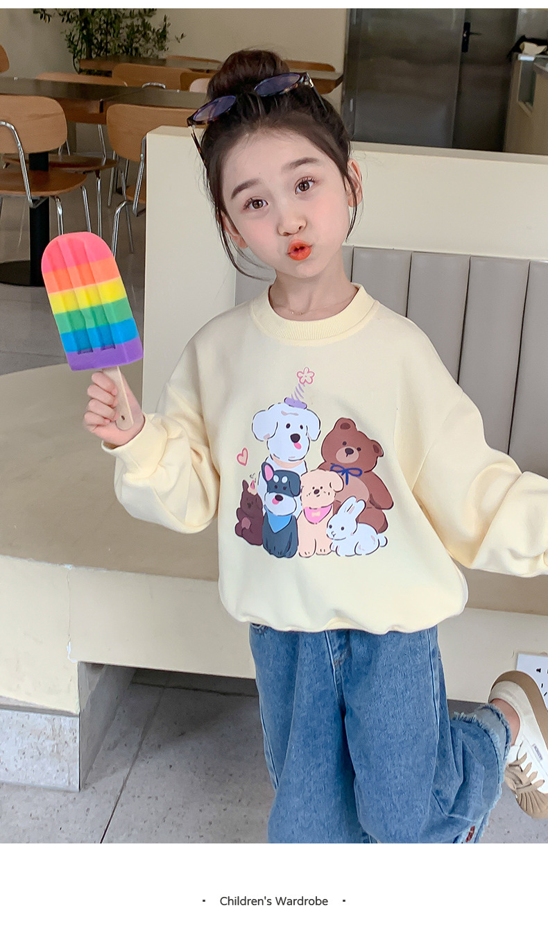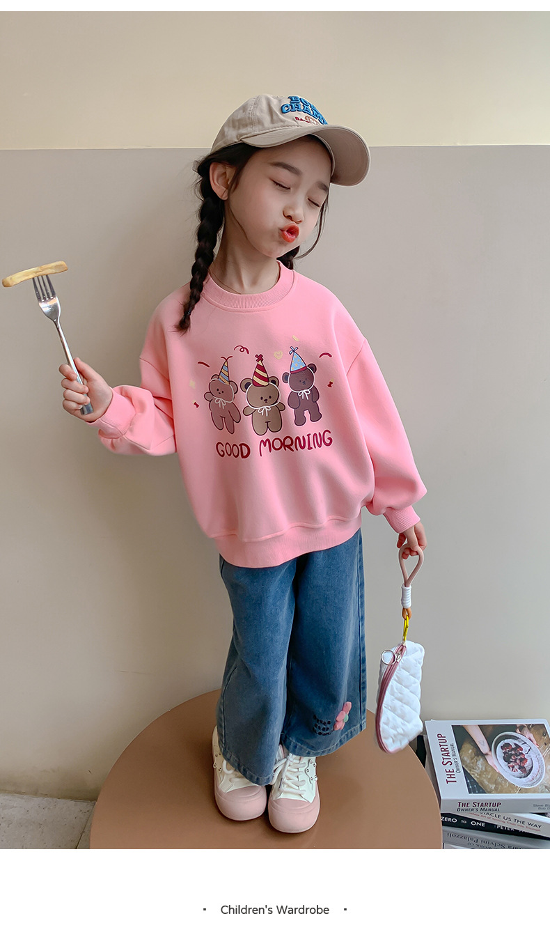 소녀의 땀 봄과 가을 2024 새로운 세련된 유행 여성의 아기 인터넷 축하 가을 최고 어린이 가을 옷스토어 가기