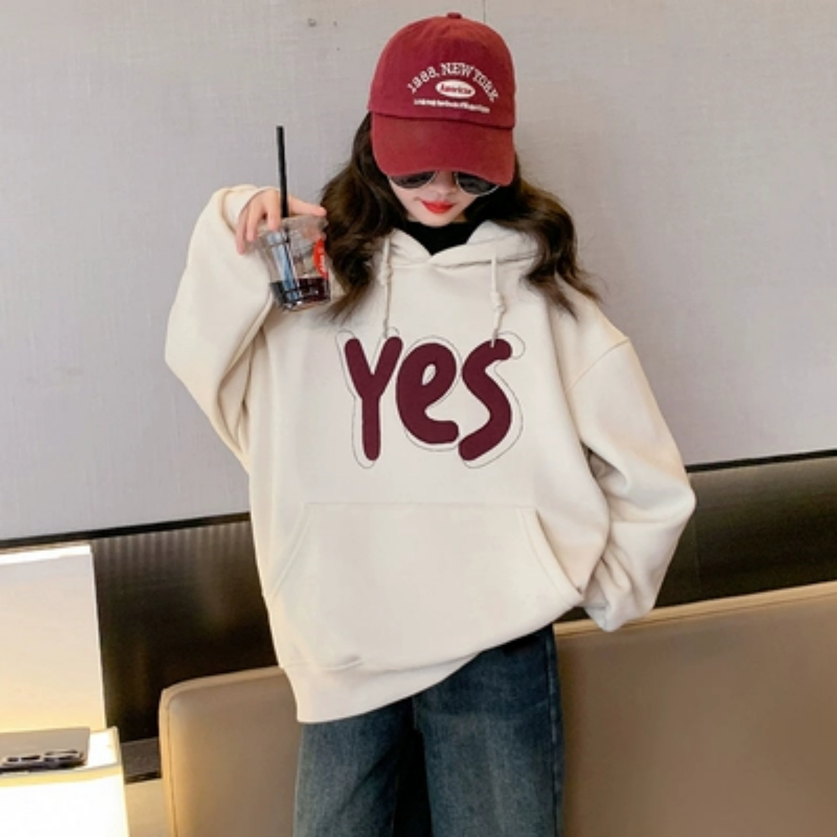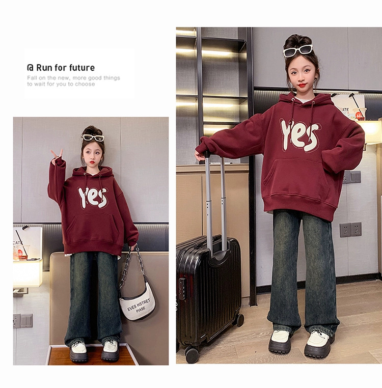 여아용 기모 스웨트셔츠 가을 겨울 2025 신상 유행 아동복 후드티 큰아이 겨울옷 긴팔 외투스토어 가기