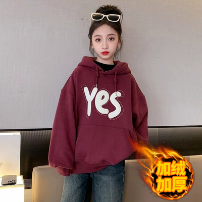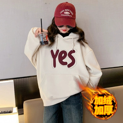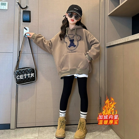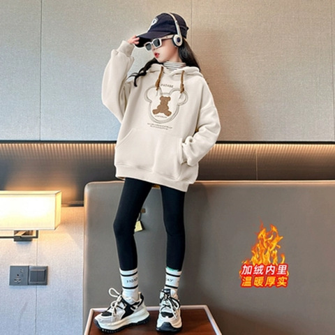 여아용 기모 스웨트셔츠 가을 겨울 2025 신상 유행 아동복 후드티 큰아이 겨울옷 긴팔 외투