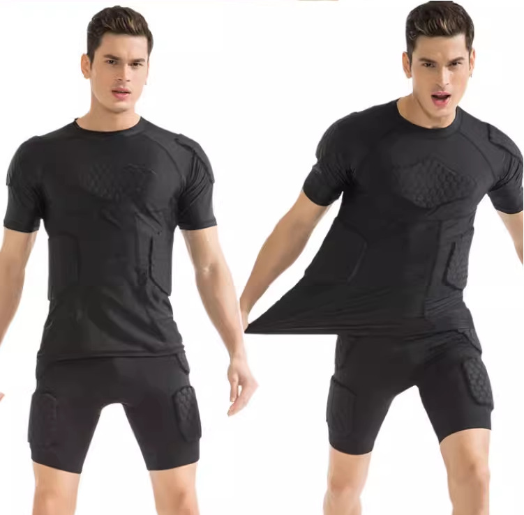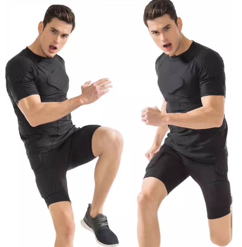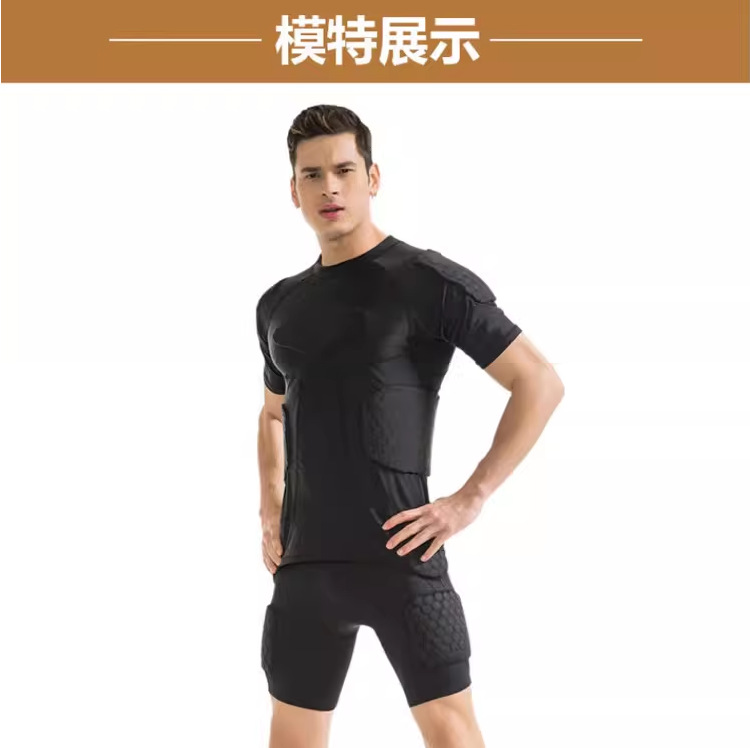 야외 훈련 벌집 충돌 방지 의류 짧은 소매 내부 착용 단단한 의류 농구 보호 조끼 반바지 사이클링 긴 소매 남성