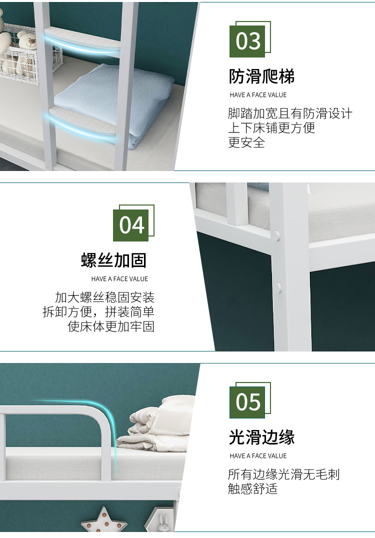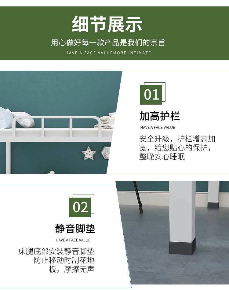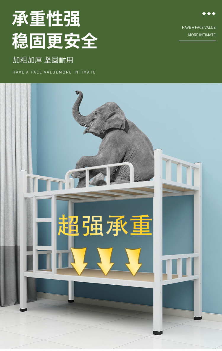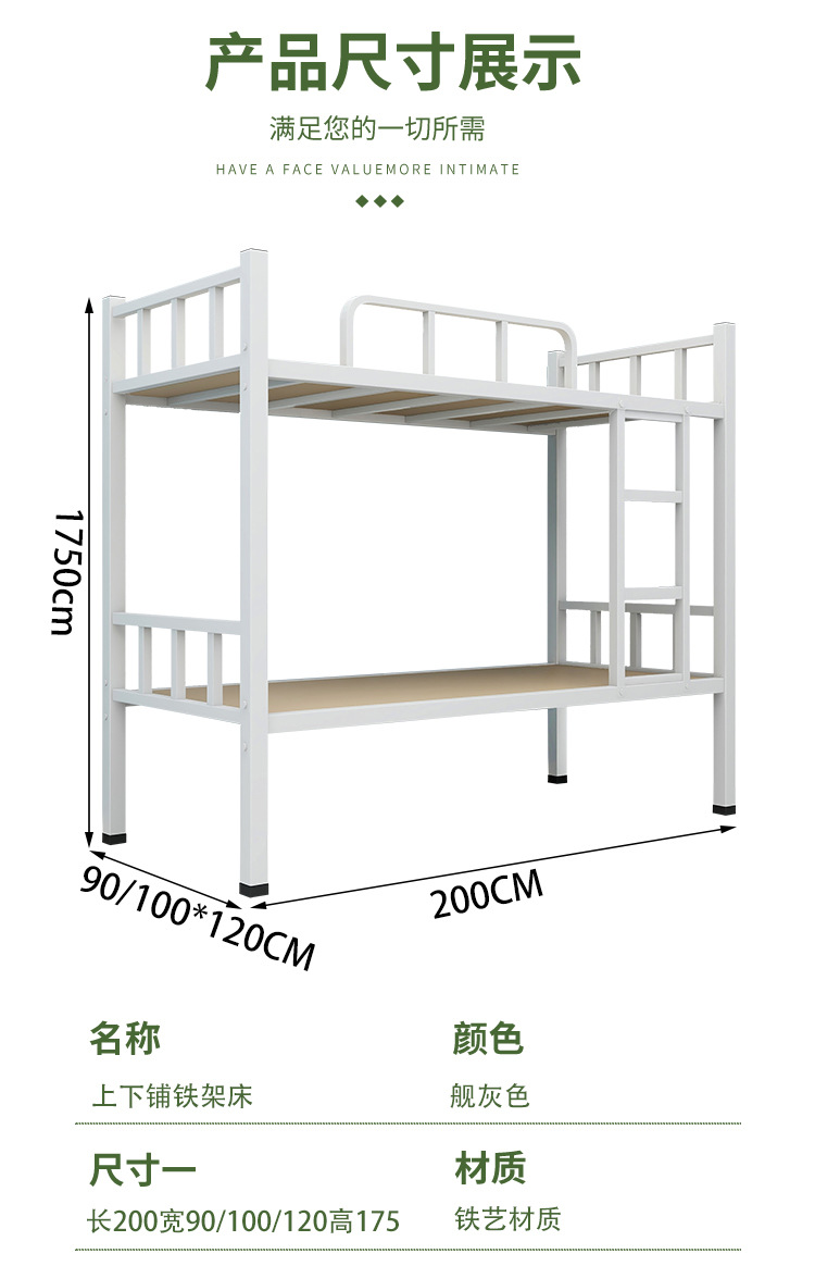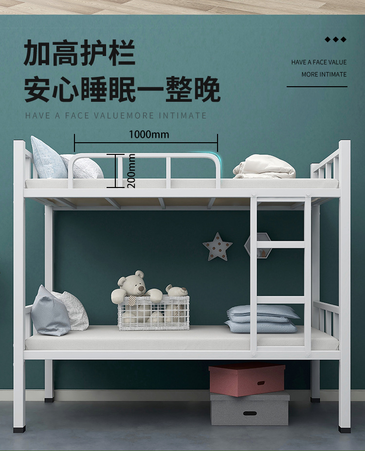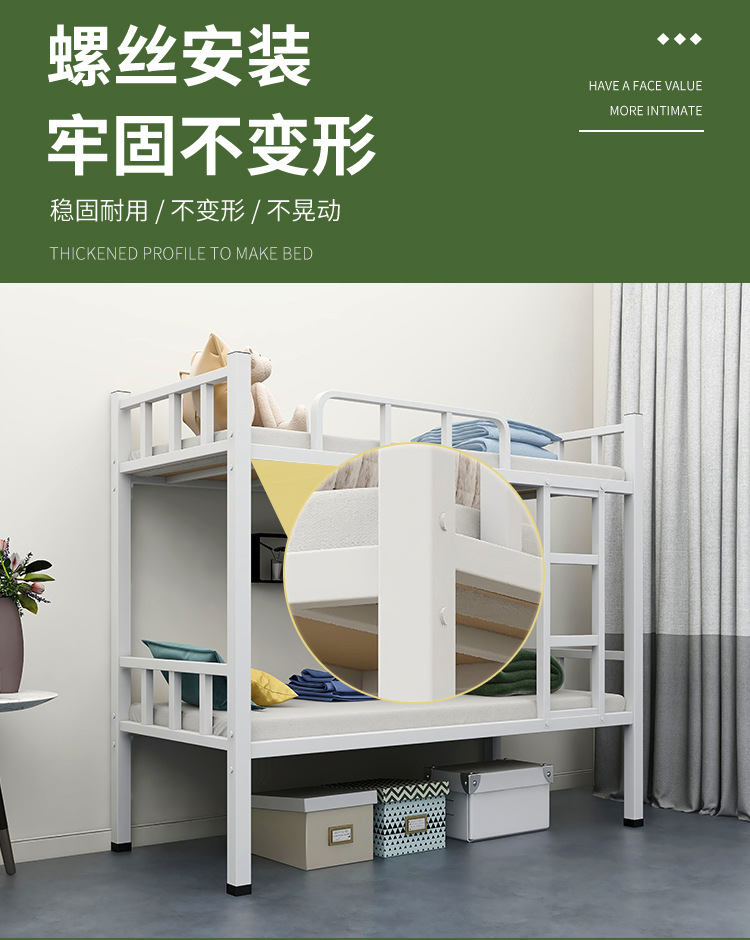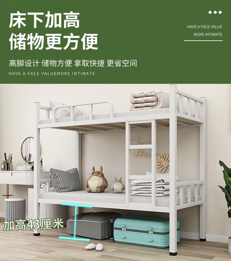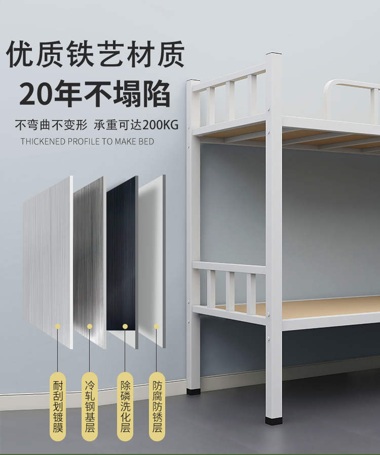 상하 이층 철제 프레임 침대 높고 낮은 침대 건설 현장 직원 기숙사 학생 아파트 철제 침대 이중층 아이 어머니 침대 두껍게