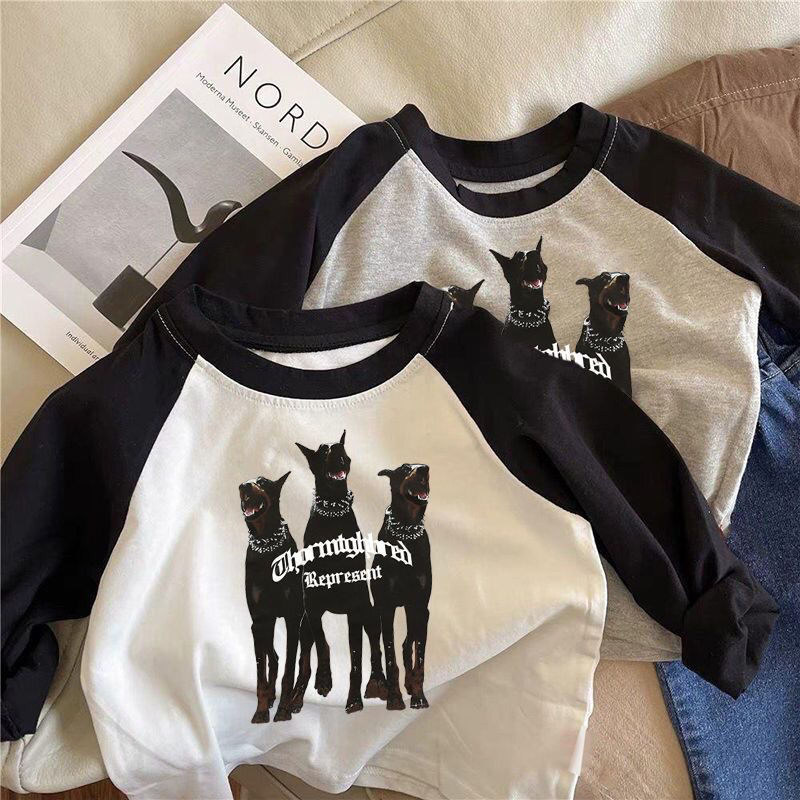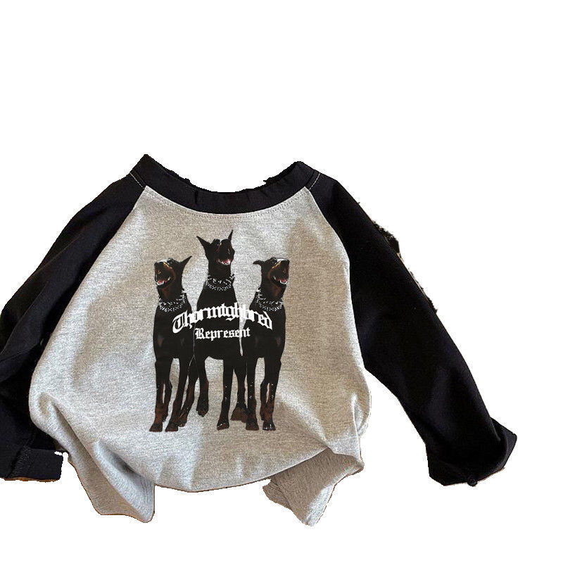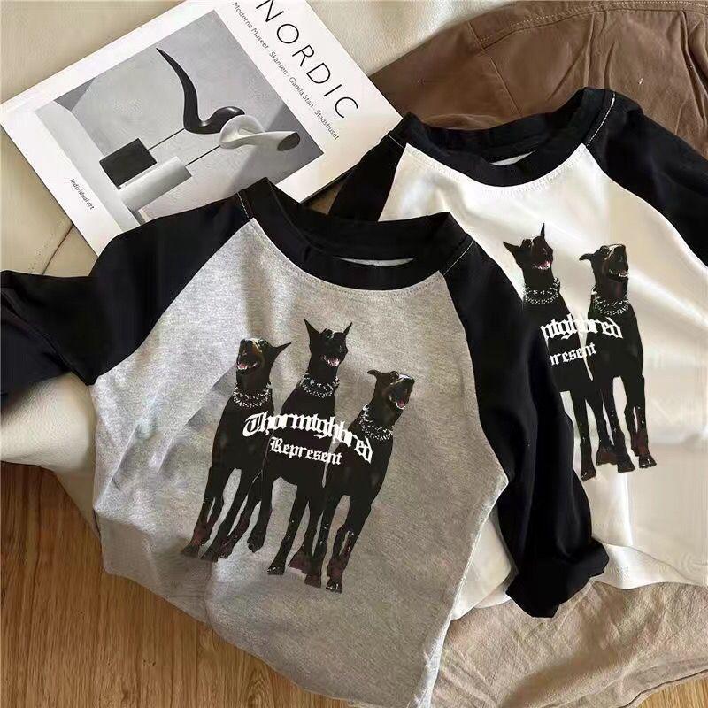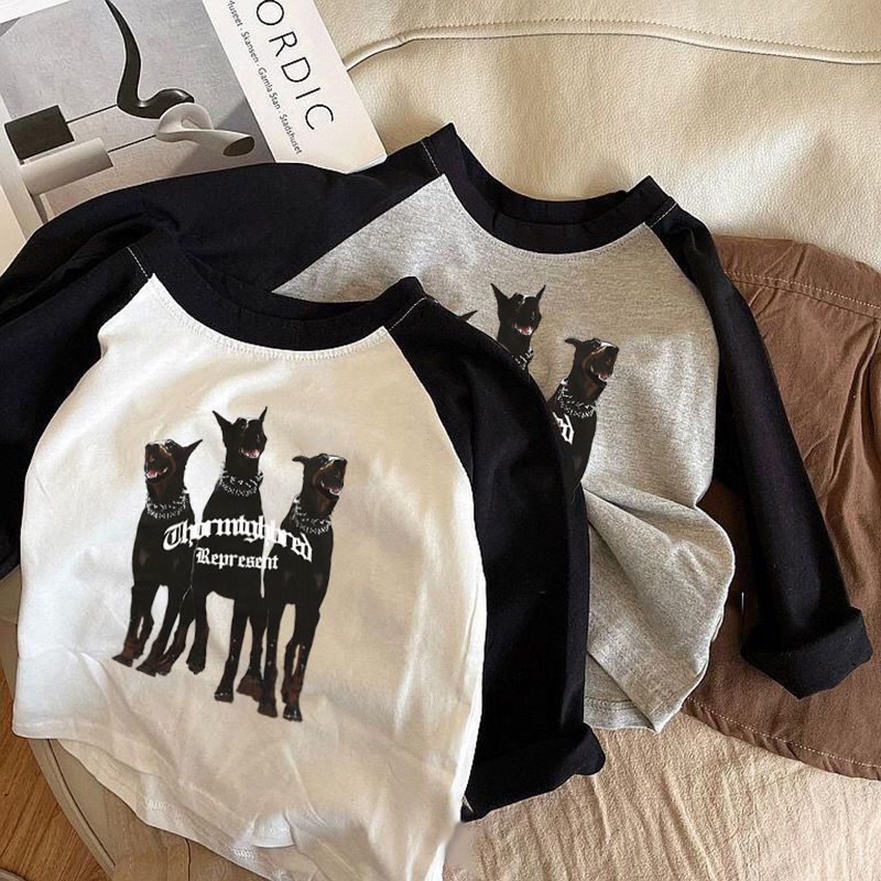 면 어린이 아기 티셔츠 긴 소매 2024 봄과 가을 느슨한 새 한국 인쇄 긴 소매 소년의 긴 최고 트렌디스토어 가기