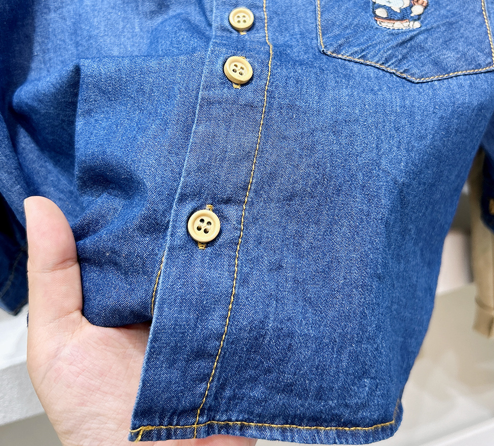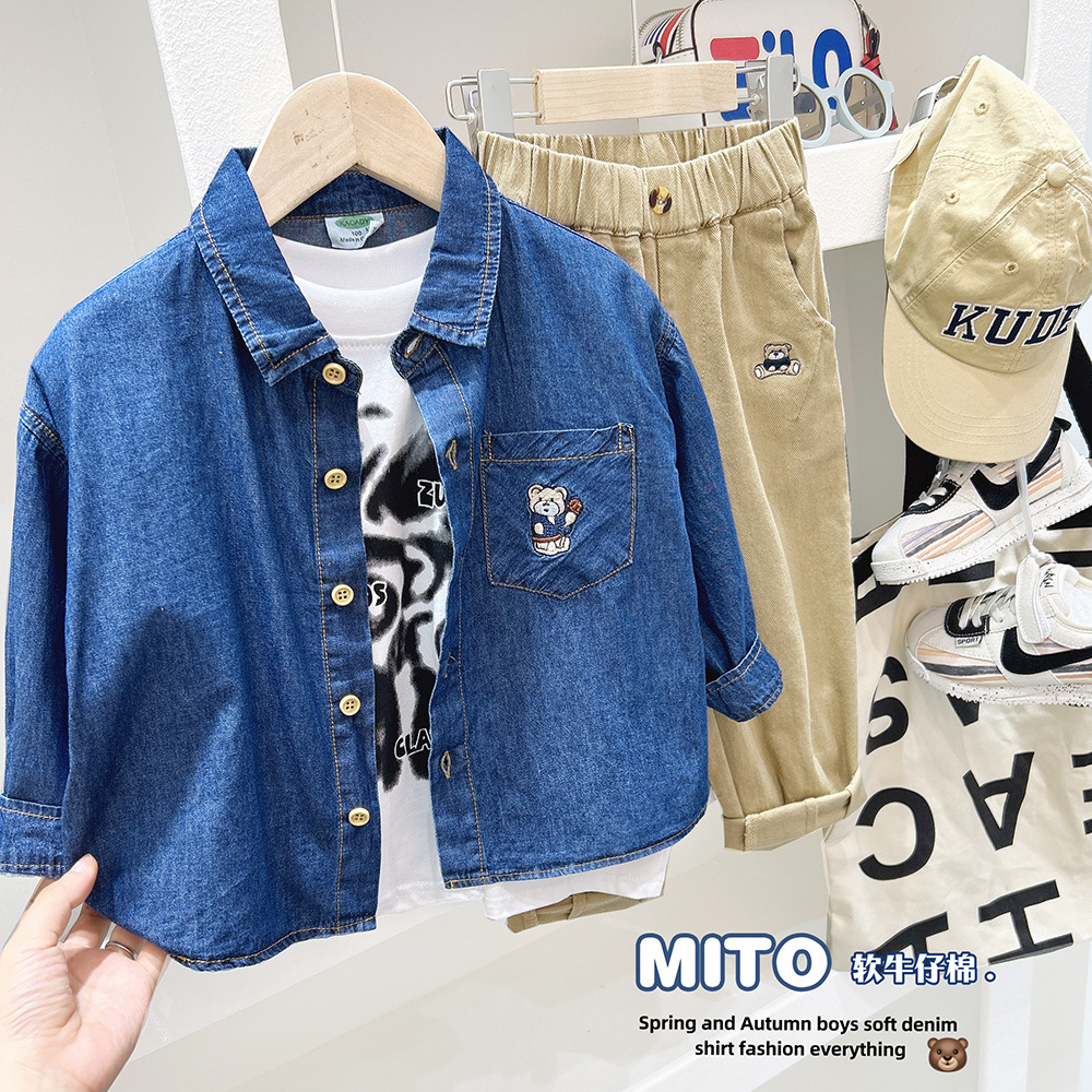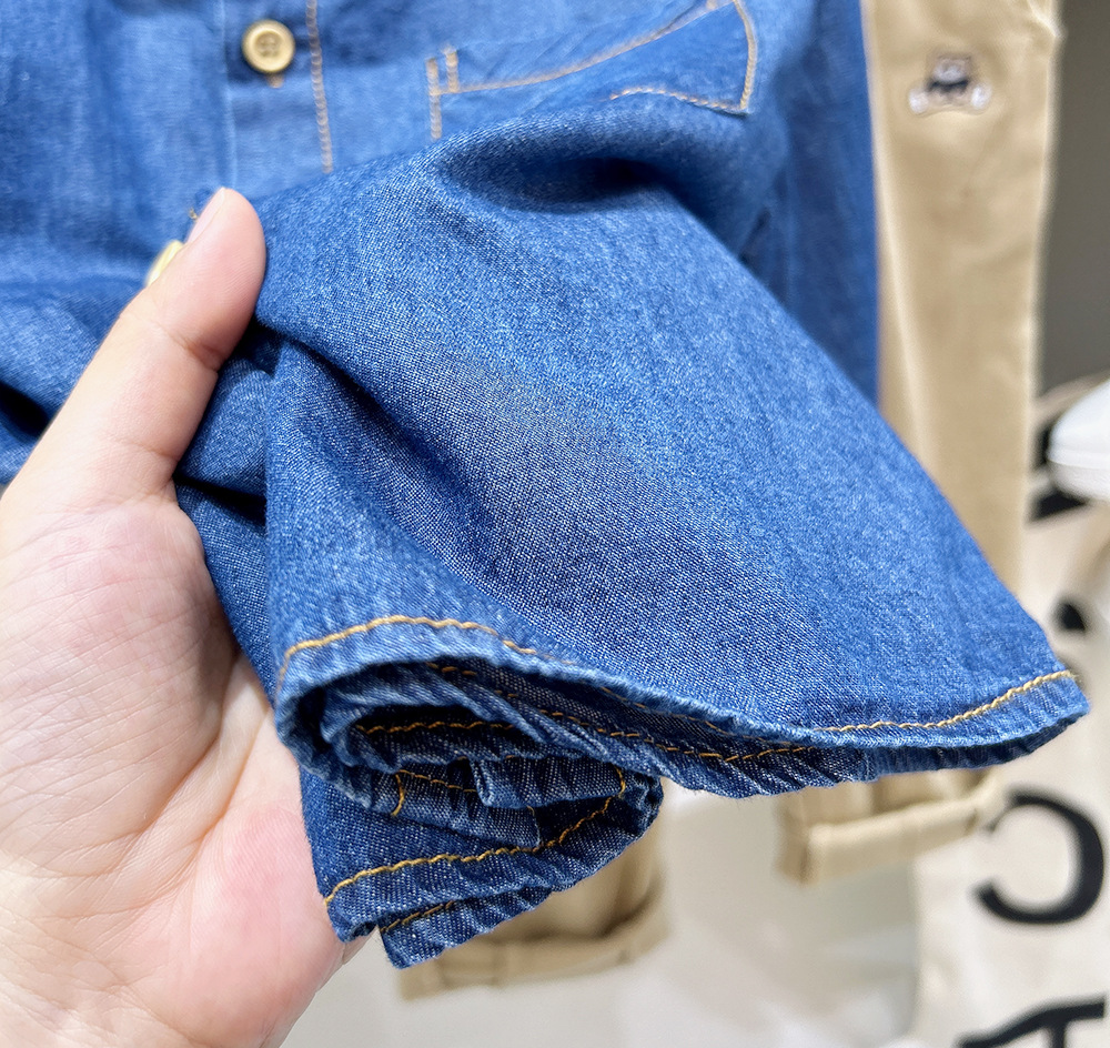 봄과 가을 소년의 데님 셔츠 2024 가을 새로운 어린이 옷 아기 셔츠 최고 유행스토어 가기