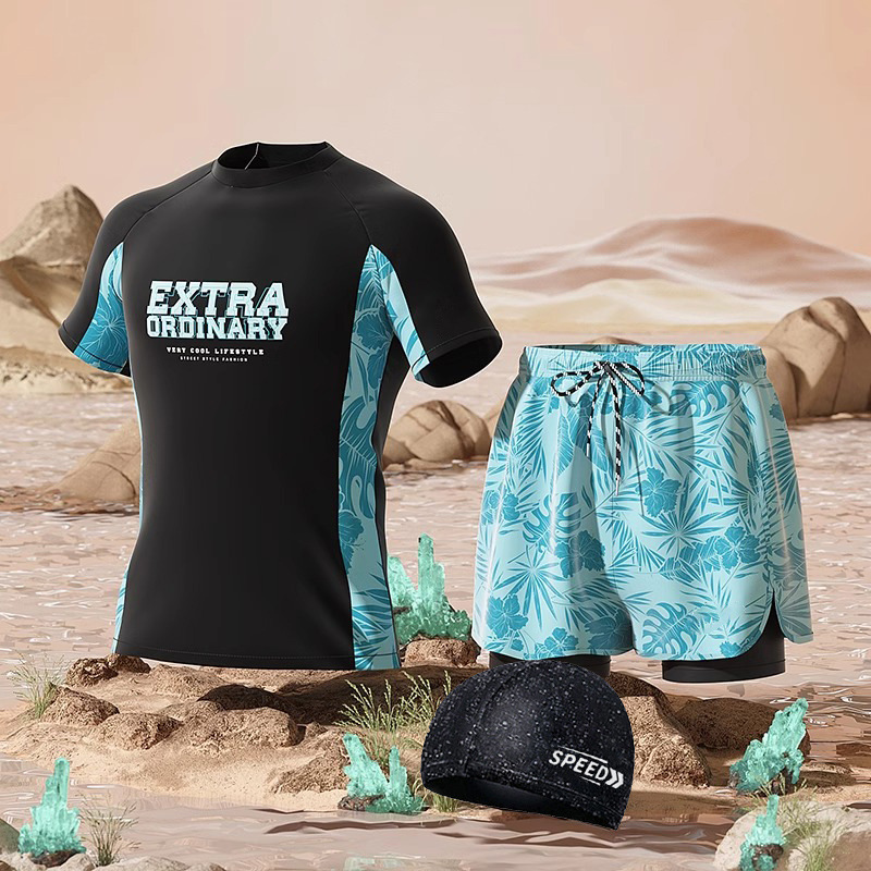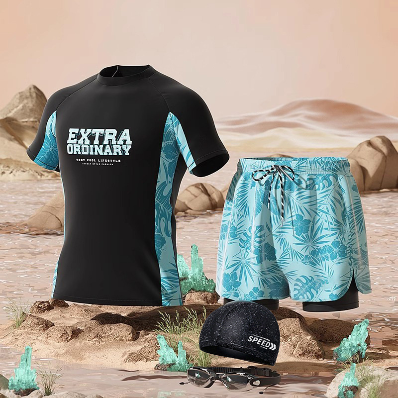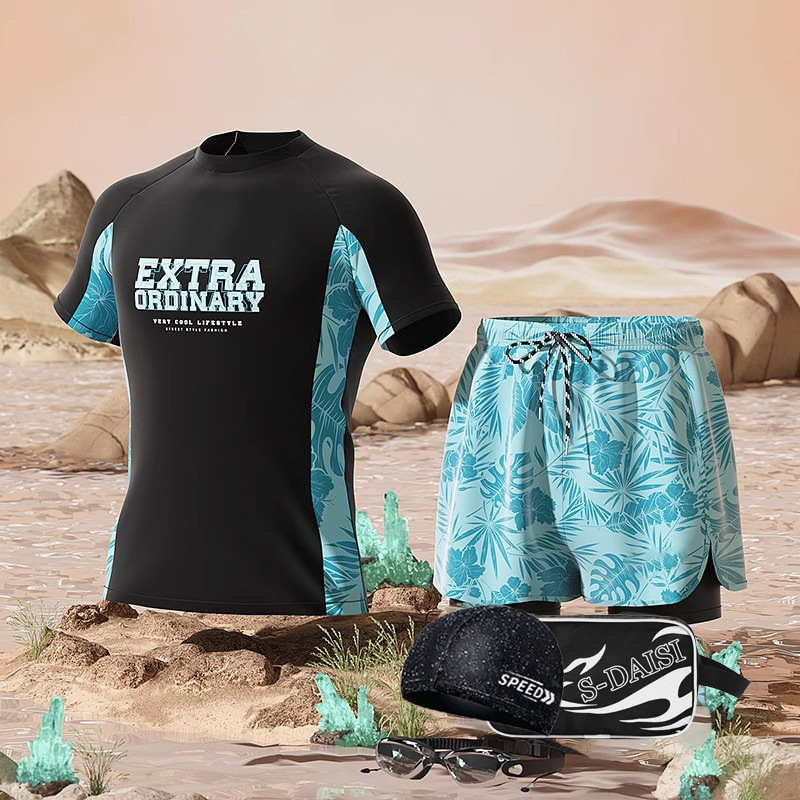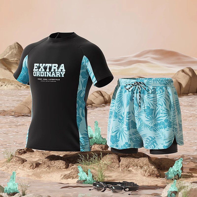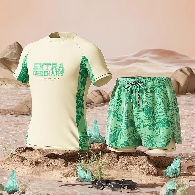 수영복 남성용 패셔너블 캐주얼 탄성 부드러운 통기성 빠른 건조 플러스 사이즈 인쇄 된 짧은 2 피스 온천 세트