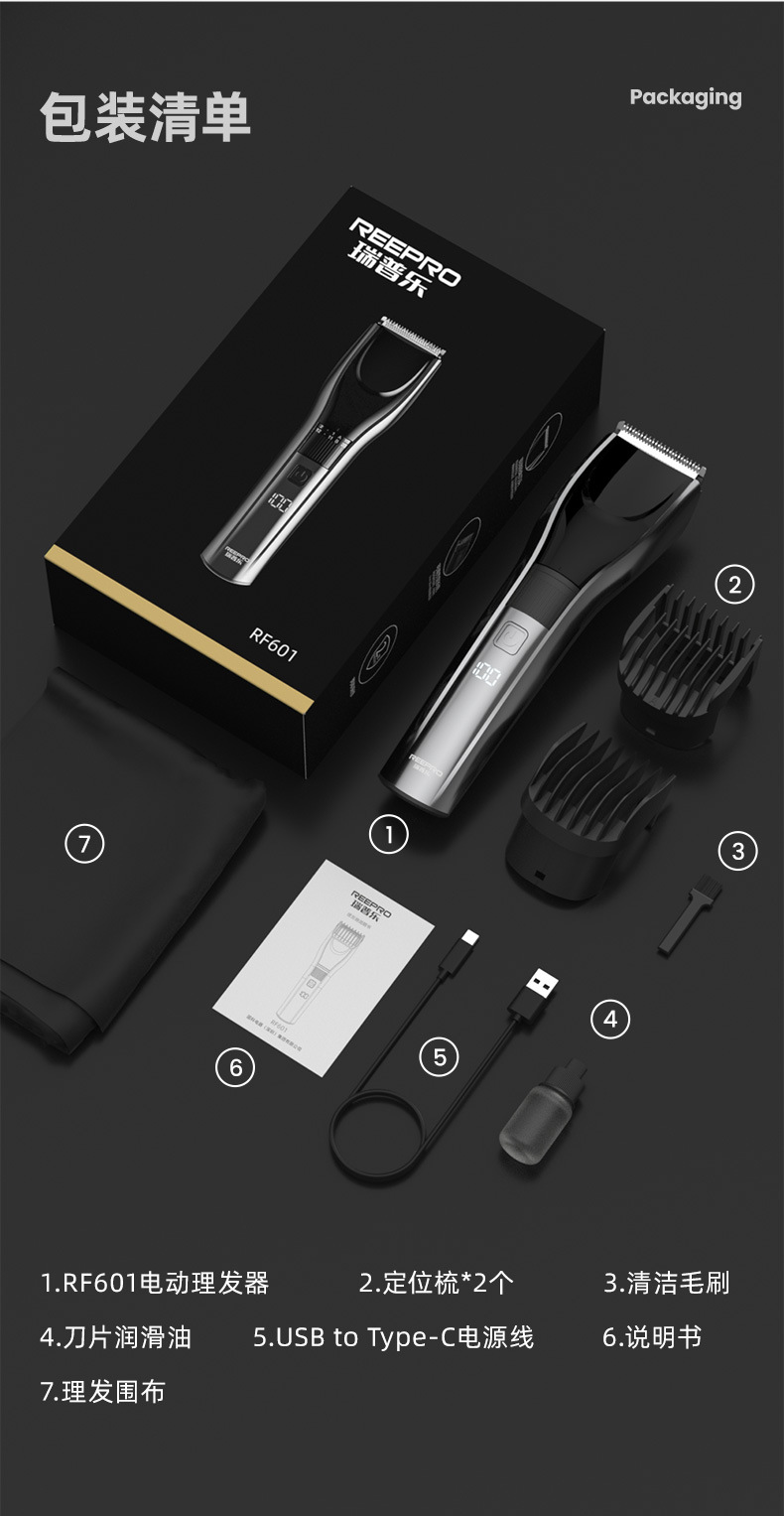 리프로 전기 헤어 클리퍼 RF601 충전식 전기 헤어 클리퍼 홈 미용실 국경 도매스토어 가기