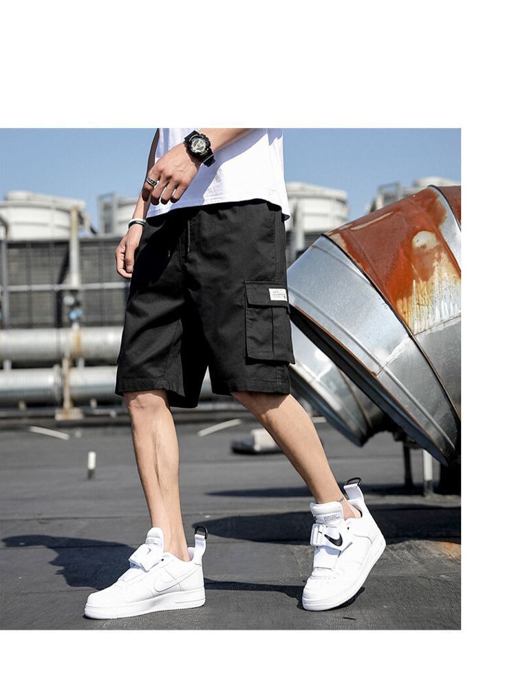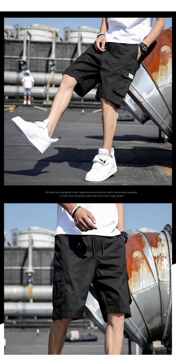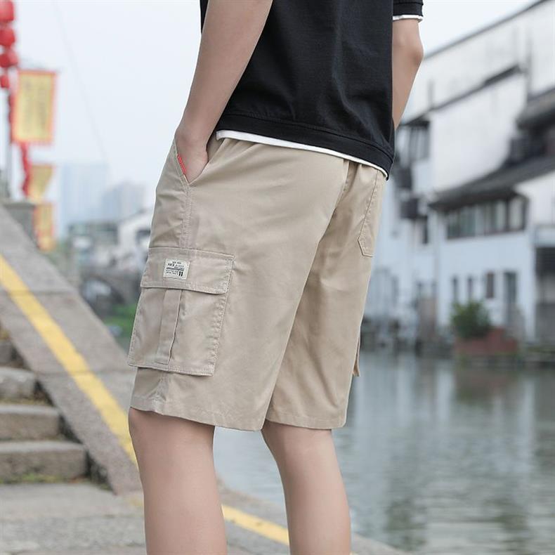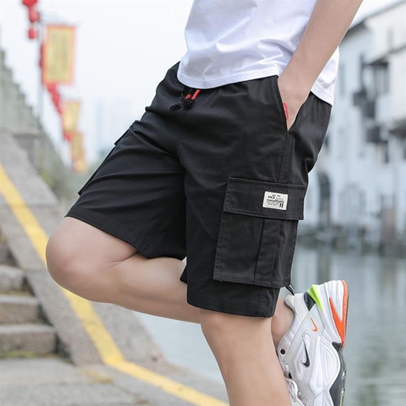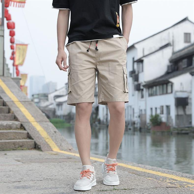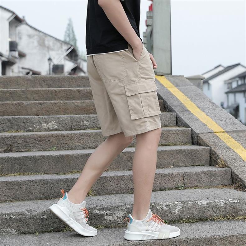 한국 스타일 멀티 포켓 솔리드 컬러 툴링 바지 남자 여름 스포츠 캐주얼 한국 스타일 유행 루즈 반바지스토어 가기