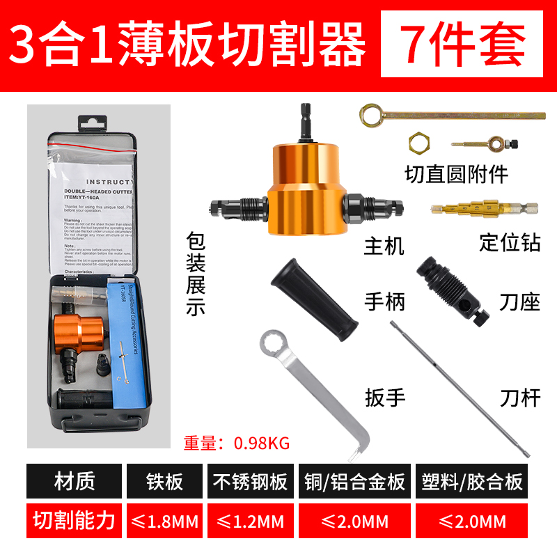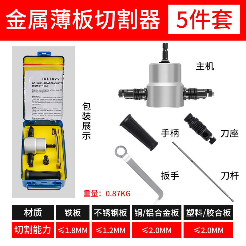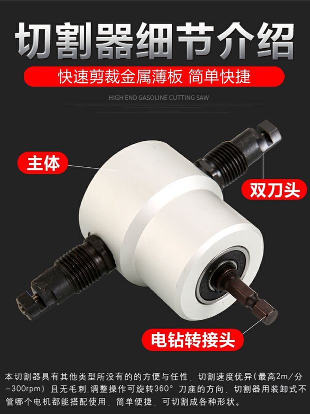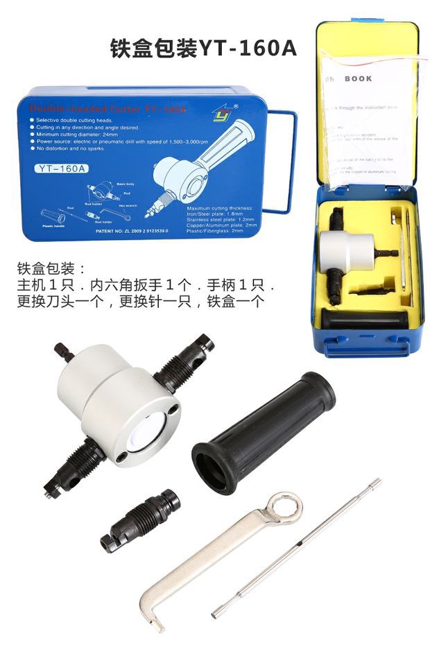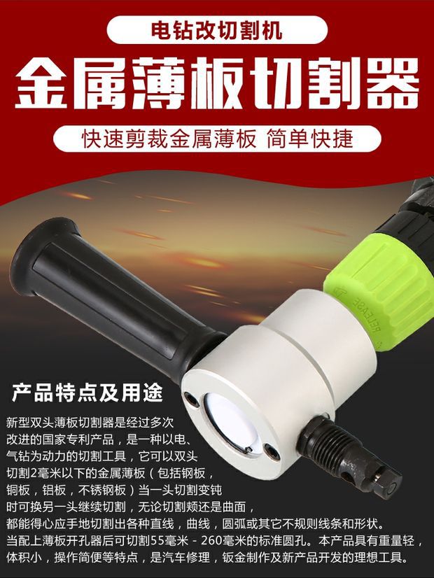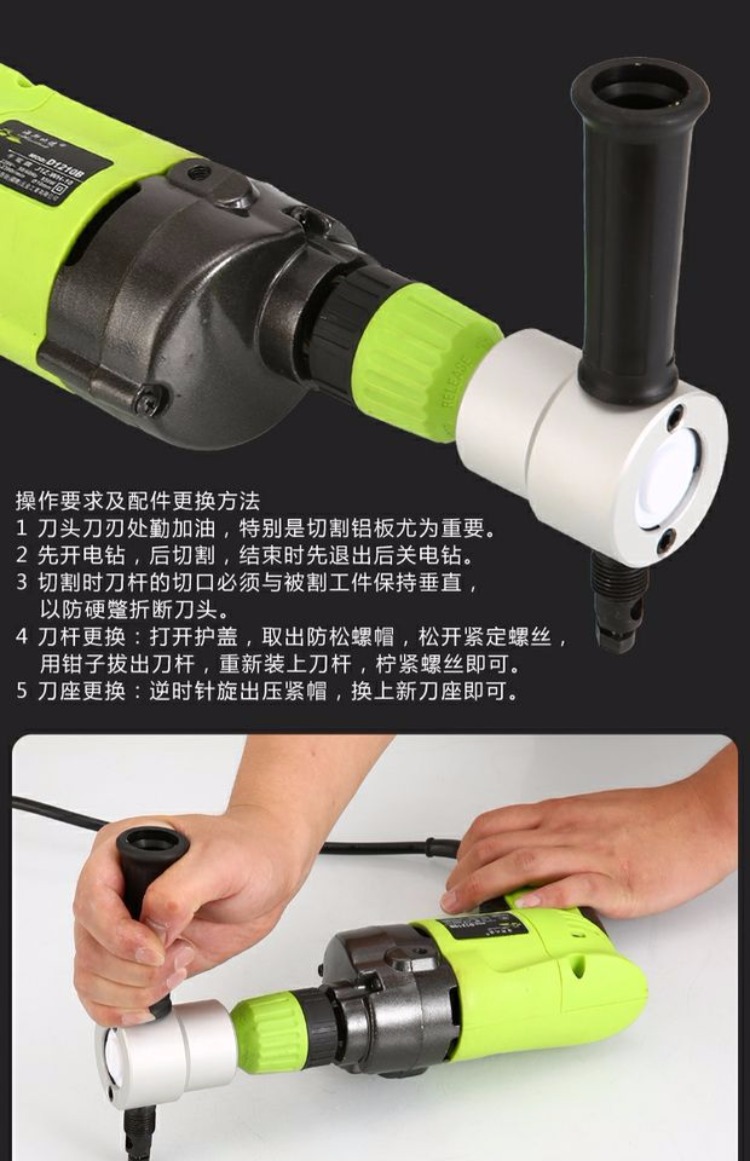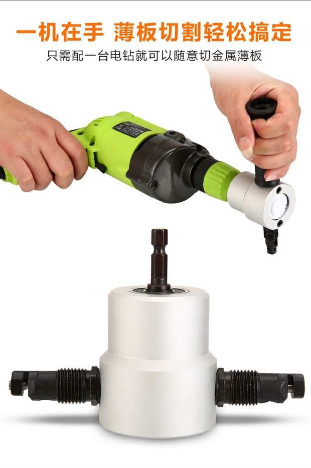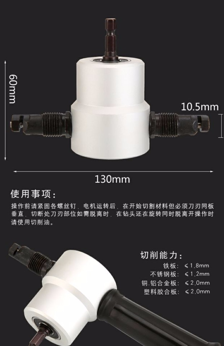 더블 헤드 시트 금속 커터 전기 드릴 가변 전기 펀칭 전단 철 시트 전기 가위 절단 기계 커브 홀 오프너